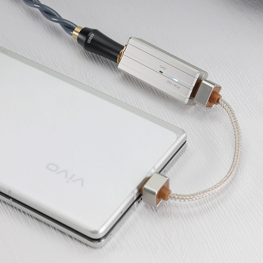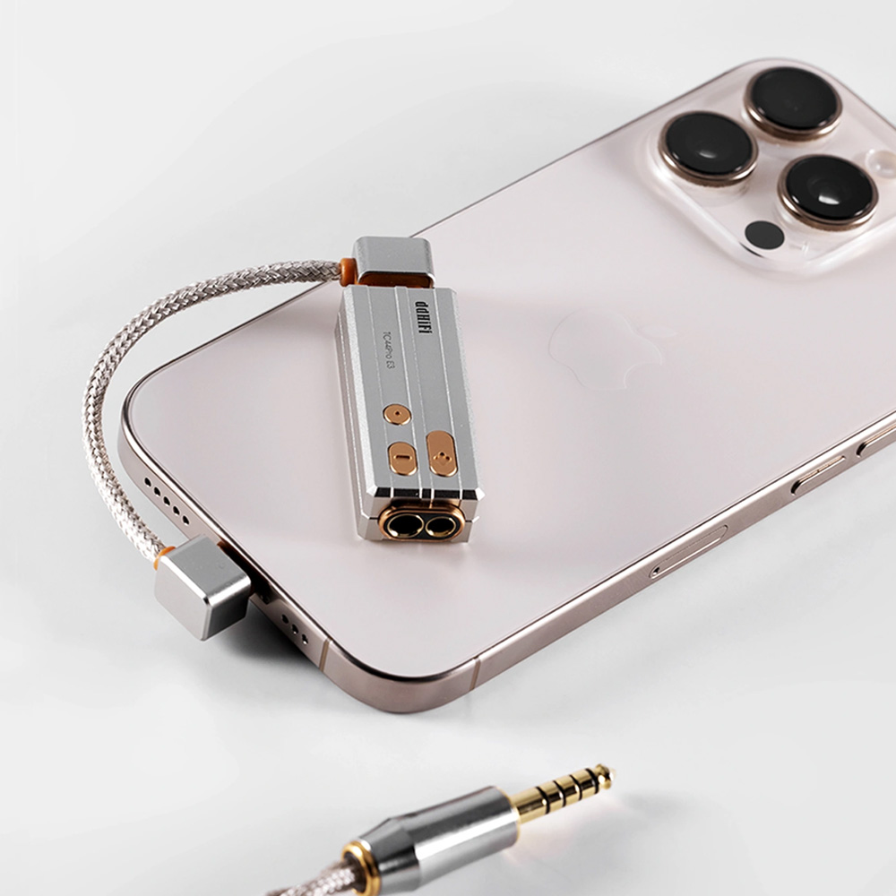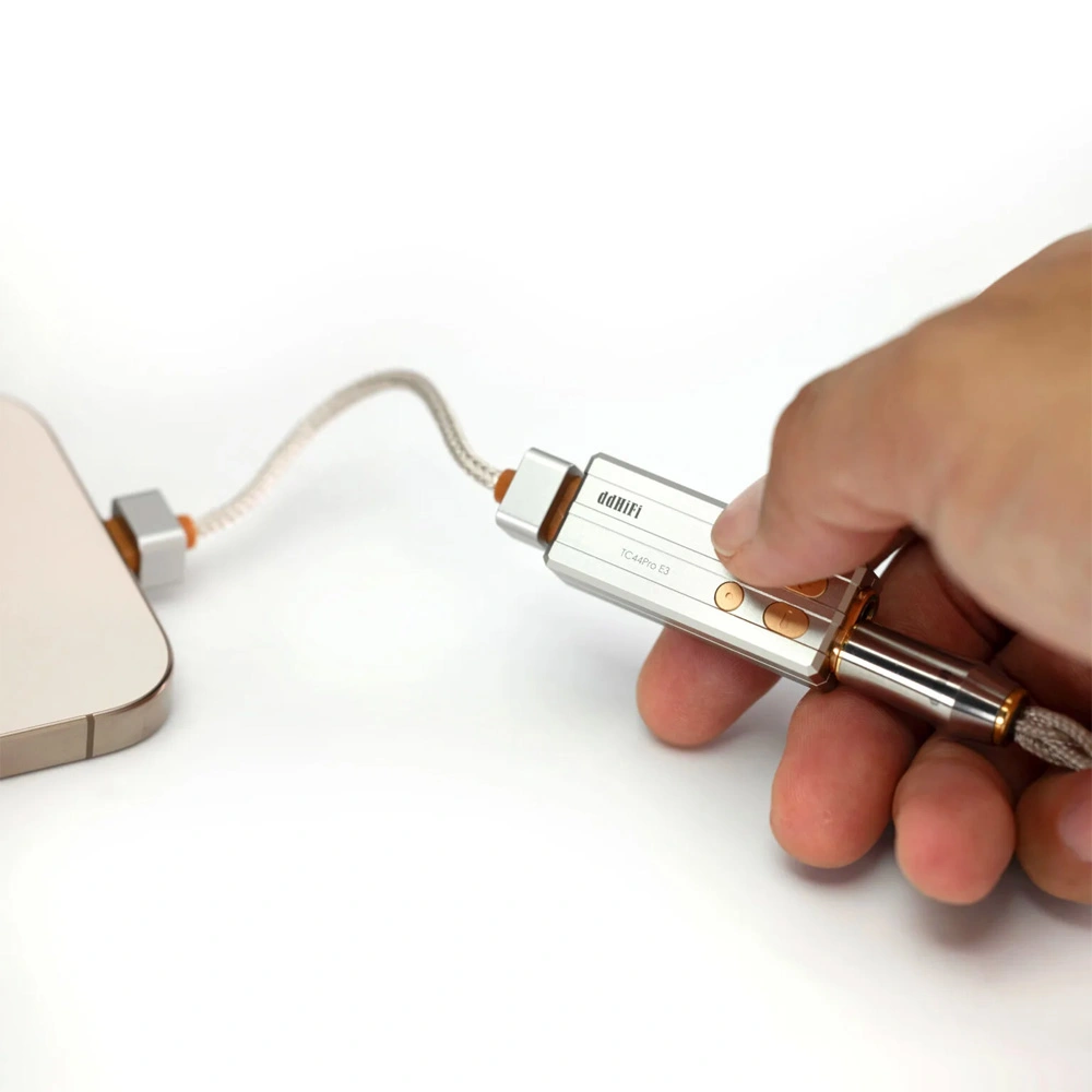 The adapters in the DAC & AMP Eye series are designed with connectors on both ends, featuring an extremely symmetrical design. The TC44Pro E3 is a third-generation wired DAC that embodies the aesthetics of functional integration with its exquisite design. Despite having 3.5mm and 4.4mm output ports, a USB-C port, DAC, motherboard with amplifier, and three additional control buttons, its final size is just slightly larger than a thumb, 20% smaller in volume compared to the previous model. This breakthrough in mobility expands the interface and functional capabilities simultaneously.