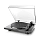 The Denon DP-300F support disc is made of aluminum through high-precision pressure casting for smooth and uniform rotation. It is topped with a rubber mat. It uses a DC servo motor that transfers torque to the disc through a belt drive. Speed switching (33.3 or 45 RPM) is done with the push of a button. The straight tonearm features an anti-skating system and a lift lever, with the option to adjust the tracking force. Vertical and horizontal angle adjustments are not provided.