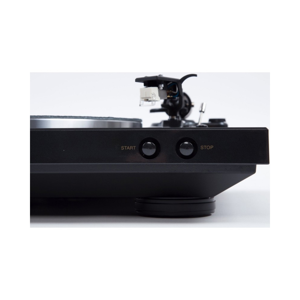 The model is fully automated. After assembly and setup, simply place the record, select its size with the corresponding button (12-inch or 7-inch), and press the Start button located on the front near the Stop button, and the DP-300F will do the rest. The cartridge needle will be automatically positioned on the starting track of the record, and after playing the entire album, the tonearm will return to its place. Manual placement of the needle on the record is also possible, which is convenient for choosing a specific track to listen to. An EP adapter for 45 RPM records is included.