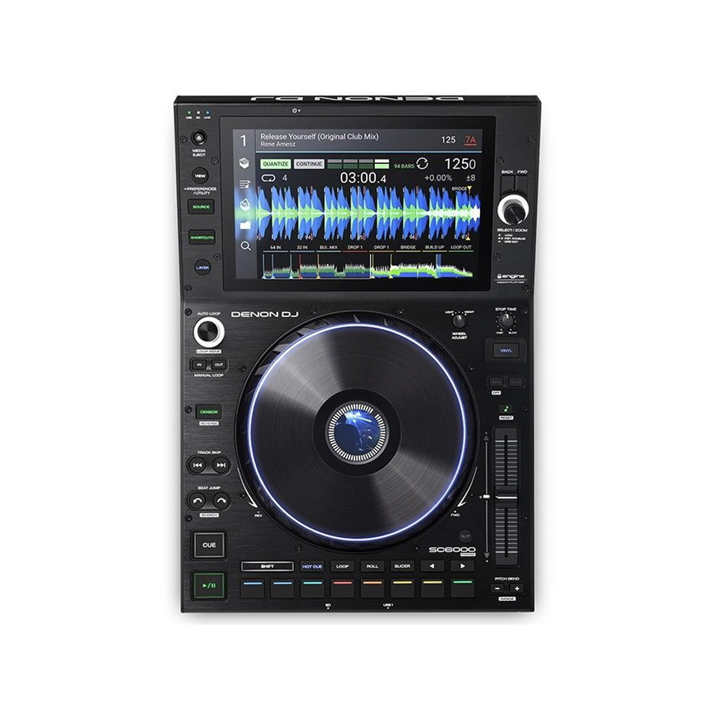 The flagship professional standalone DJ player Denon SC6000 Prime is equipped with the ENGINE OS and is capable of dual-layer playback through two independent analog/digital outputs. The media player features a large 10.1” HD touchscreen display that supports multi-touch gestures. The display allows you to work with large libraries, edit playlists, manipulate waveforms, and even analyze files without losing sight of your work information. The 8.5” jog wheel has a larger surface area compared to previous models for scratching and pitch or cue manipulation. You can adjust the wheel's feel of gravity or inertia, as well as customize the center display and LED perimeter lighting.