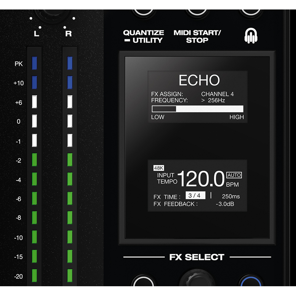 Add dynamic audio effects to your mix with the 4 Sweep FX X1850, featuring contour frequencies with a powerful Lo/Hi filter. Show your creativity and expressiveness with 16 Pro-Club BPM FX X1850 and Touchstrip "Time-Division". The X1850 provides FX Quantize control to match all effect parameters to your grooves!