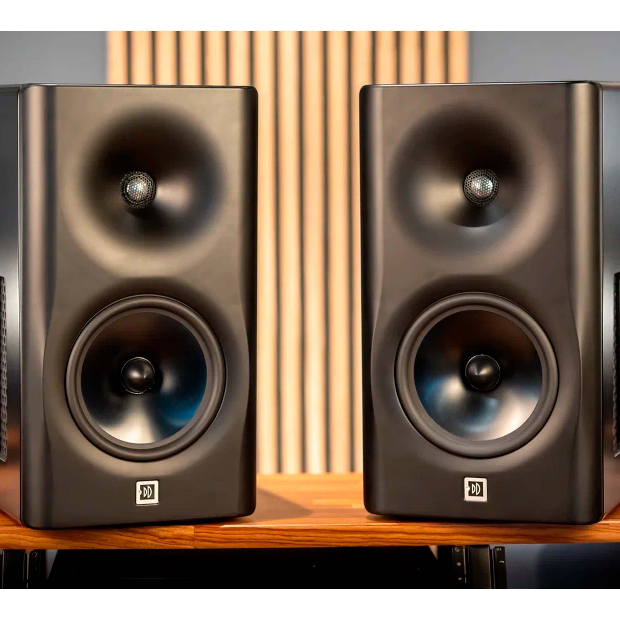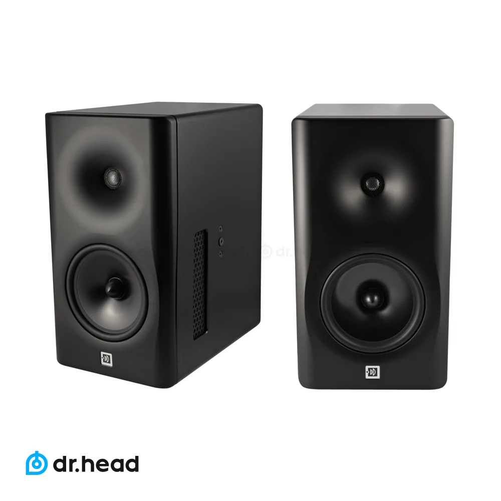 We are looking at a large bookshelf speaker system that will confidently perform even in small spaces - whether it's a control room or a hall. The sound will be focused in front of the speaker system, while the bass drivers on the back panel will provide deep bass sound.