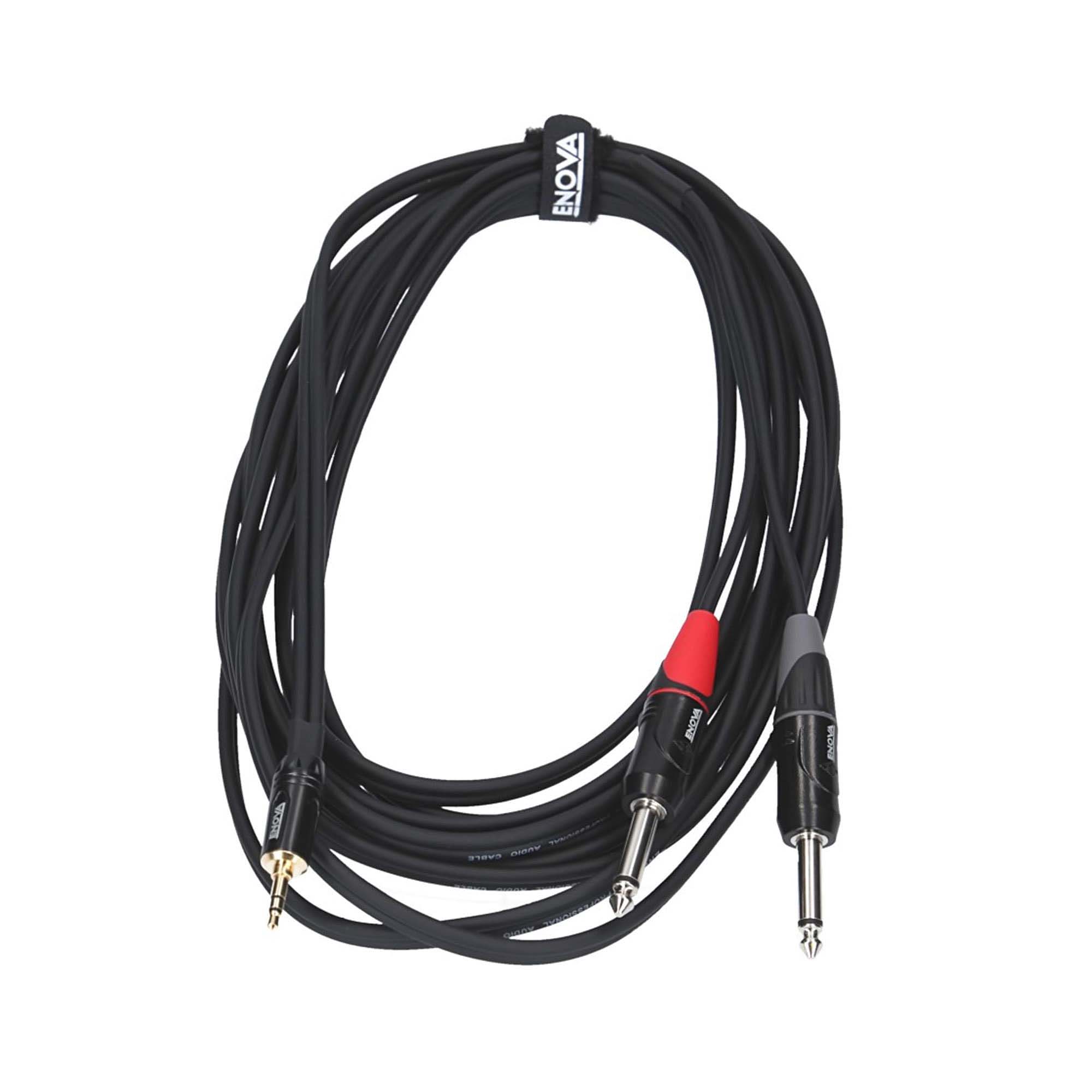 Professional stereo audio transmission 3.5 mm stereo jack plug (TRS) to two 6.35 mm mono jack plug (TS).