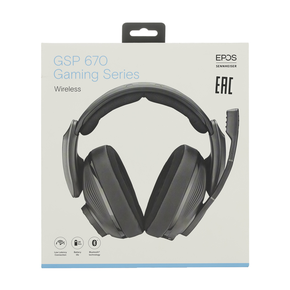 The GSP 670 is a wireless gaming headset designed for serious gamers who demand the best. It delivers an outstanding gaming experience with its 7.1 surround sound, which can be customized using the EPOS Gaming Suite. With separate controls for chat and game audio integrated into the headset, you can easily adjust the sound to your liking. The headset also features intelligent battery management, providing up to 20 hours of battery life. Additionally, its Bluetooth feature allows for seamless switching between gaming and phone use.