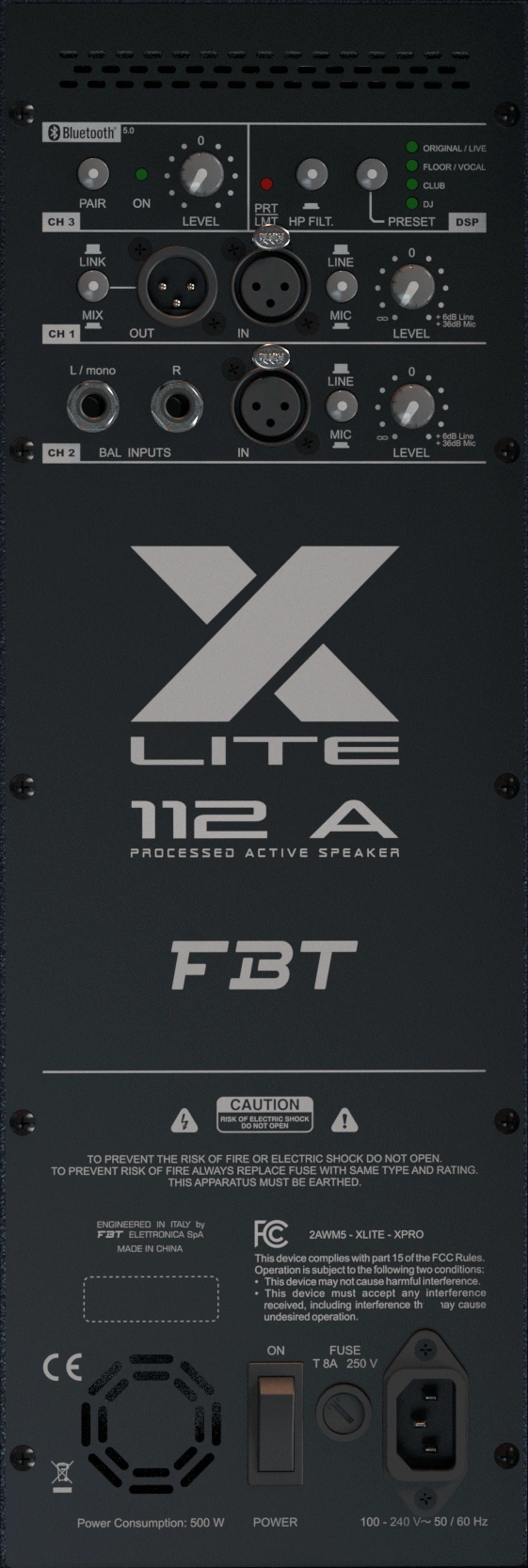FBT X-LITE 112A is a professional active acoustic system with a built-in 3-channel mixer and Bluetooth receiver. It can be used in clubs, bars, concert venues, rehearsal studios, auditoriums, small theaters, as well as in budget and educational institutions.