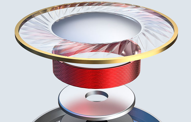 - Low frequencies: a large 13.6mm driver made of beryllium, known for its lightness, delicacy, and exceptional rigidity, resulting in such powerful, deep bass.