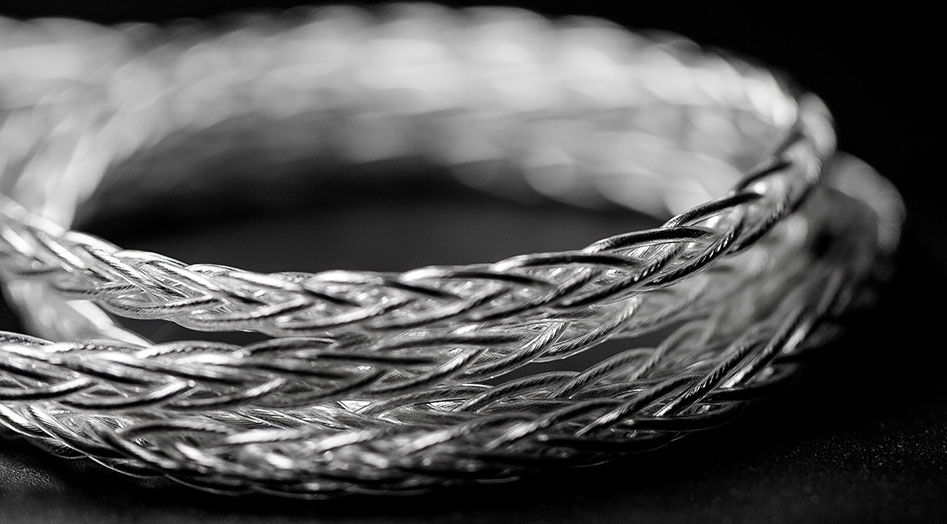 Eight strands of pure sound The earphones come with an 8-core cable made of single crystal silver-plated copper, providing the best sound quality right out of the box. The connectors are marked with red and blue for easy cable replacement.