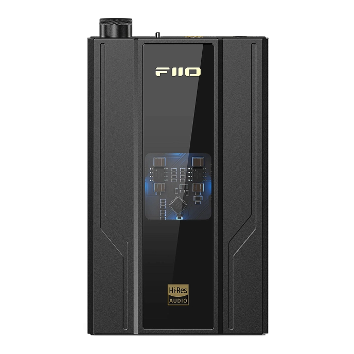FiiO Q11 stands out with its exquisite all-metal housing design. The device has a mirror finish and looks simply stunning. In the center of the device, there is a transparent glass window with LEDs that light up in different colors depending on the active bit rate. Blue glow indicates a sampling frequency of 48 kHz or lower, yellow indicates a sampling frequency higher than 48 kHz, and green is for DSD audio signals. The illumination can be turned off using the FiiO Control app.