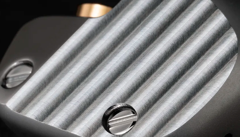 The housing is made of high-strength stainless steel with precise mechanical processing. The design provides reliable support for the driver and suppresses unnecessary vibrations, resulting in clearer sound contours. Additionally, the housing is adorned with a wave-like, precisely cut pattern known as "Cotes de Geneve." This technique is not only aesthetically pleasing but also provides less deviation in accuracy compared to polishing, as the cut surface has the same finished dimensions, making it often used for luxury watch components.