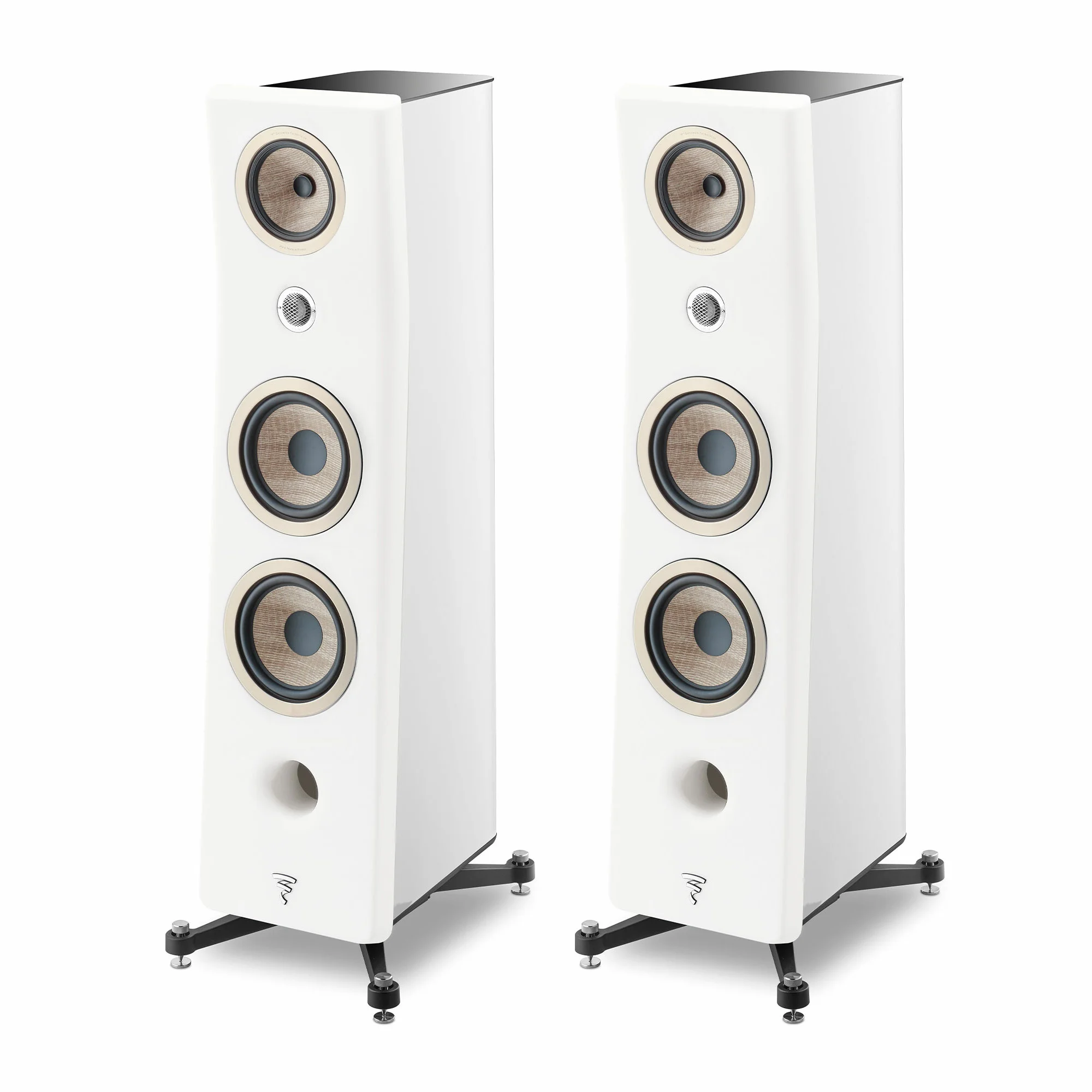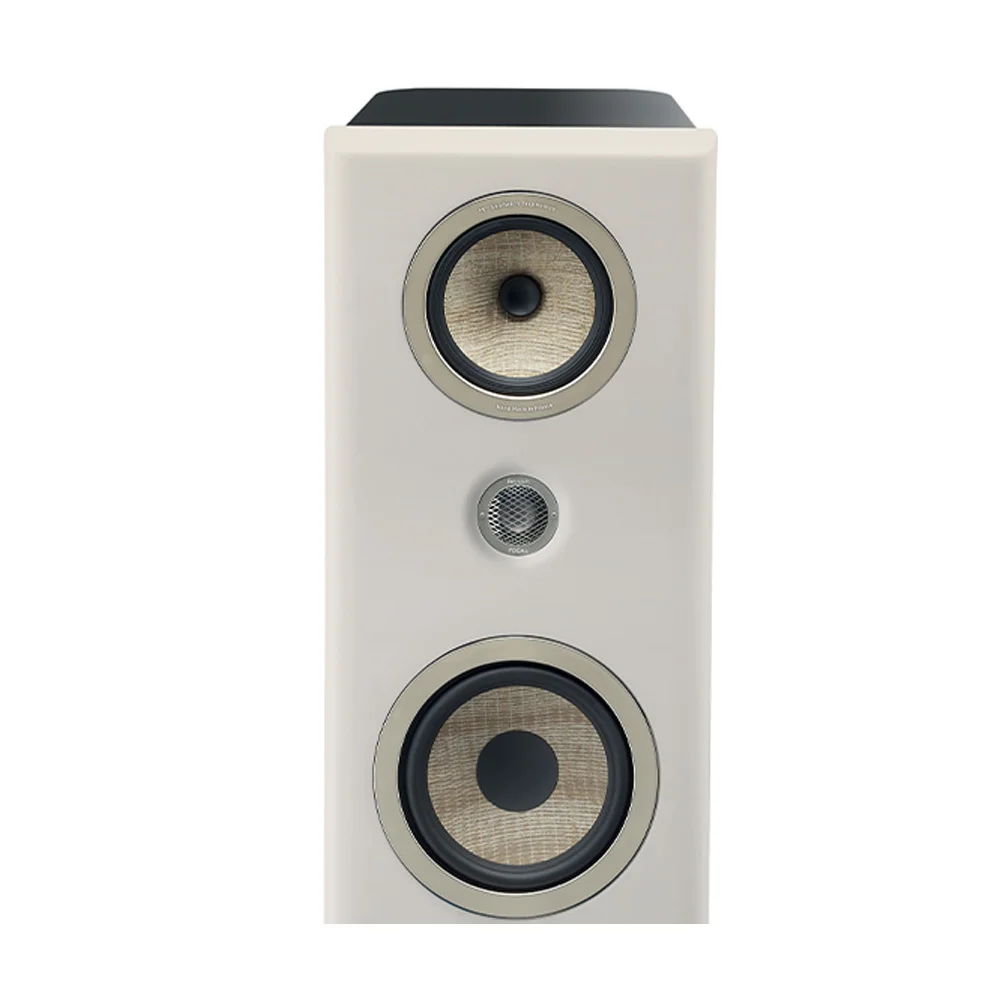 Focal engineers have redesigned the "Focus Time" technology, which corrects the positioning of the drivers, placing them at an equal distance from the listener. The body is made from a single piece of wood. The Zamac base is also crucial. Thanks to the spikes and the stands underneath them, the base provides excellent stability with very little footprint. Final details include a glass top and grills with magnetic fastening. When removed, you can enjoy the natural uniqueness of each Flax cone driver - a final design touch that gives the Kanta series its unique look.
