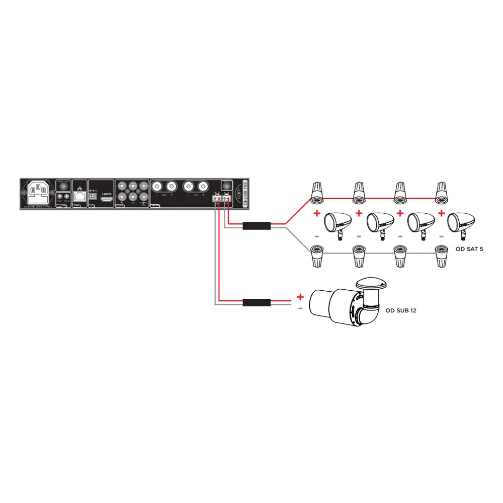 - Four OD SAT 5 loudspeakers and one OD SUB 12 subwoofer: outstanding sound quality for outdoors;