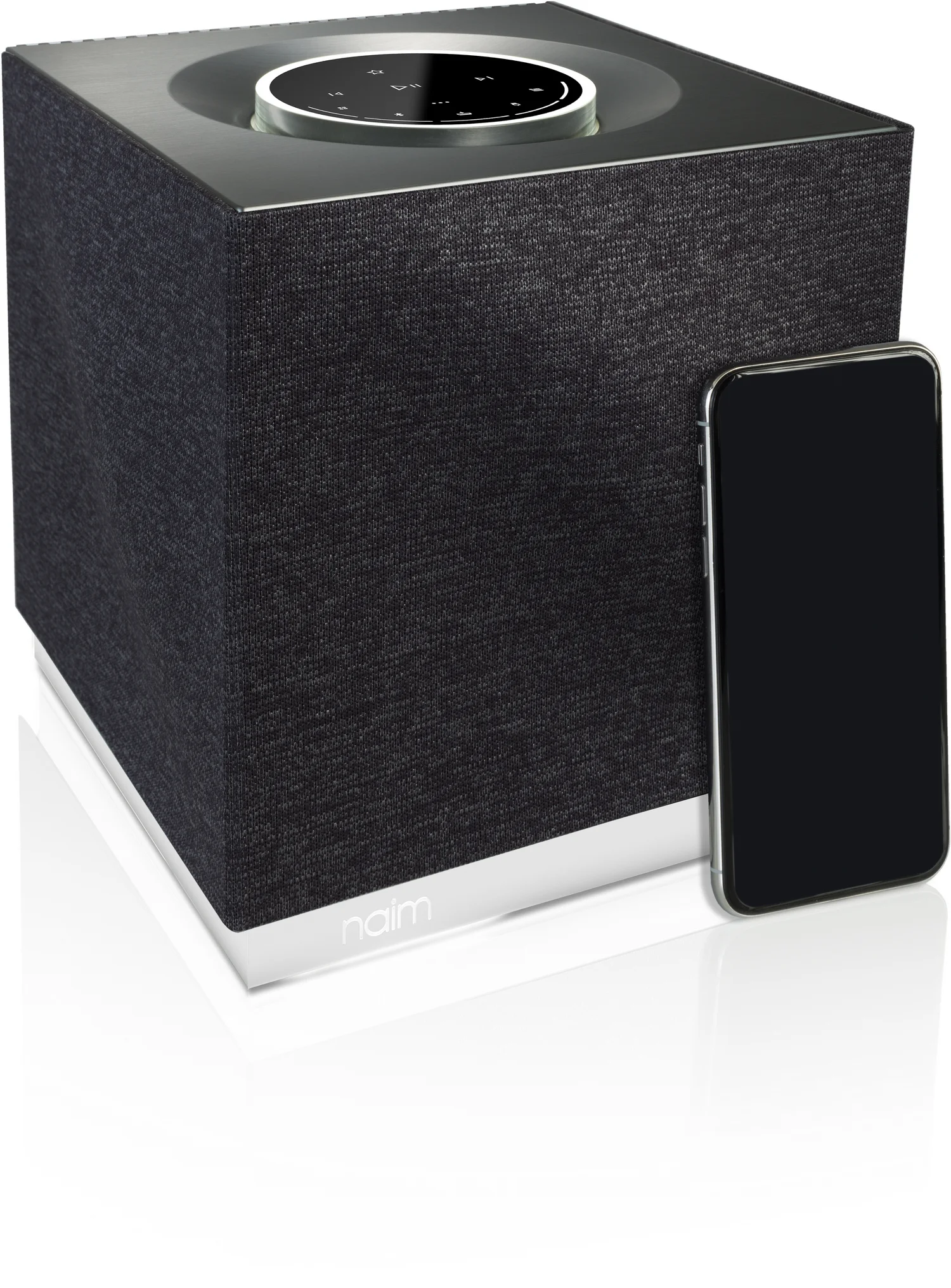 Mu-so Qb 2nd Generation The Naim Mu-so QB 2nd Generation model is a versatile wireless audio system with streaming capabilities, housed in an eye-catching compact cube casing, continuing the innovative line of its predecessor Mu-so. The top panel of the cabinet features an illuminated disc with touch controls for all functions, surrounded by a volume control ring. The transparent acrylic base has adjustable brightness illumination.