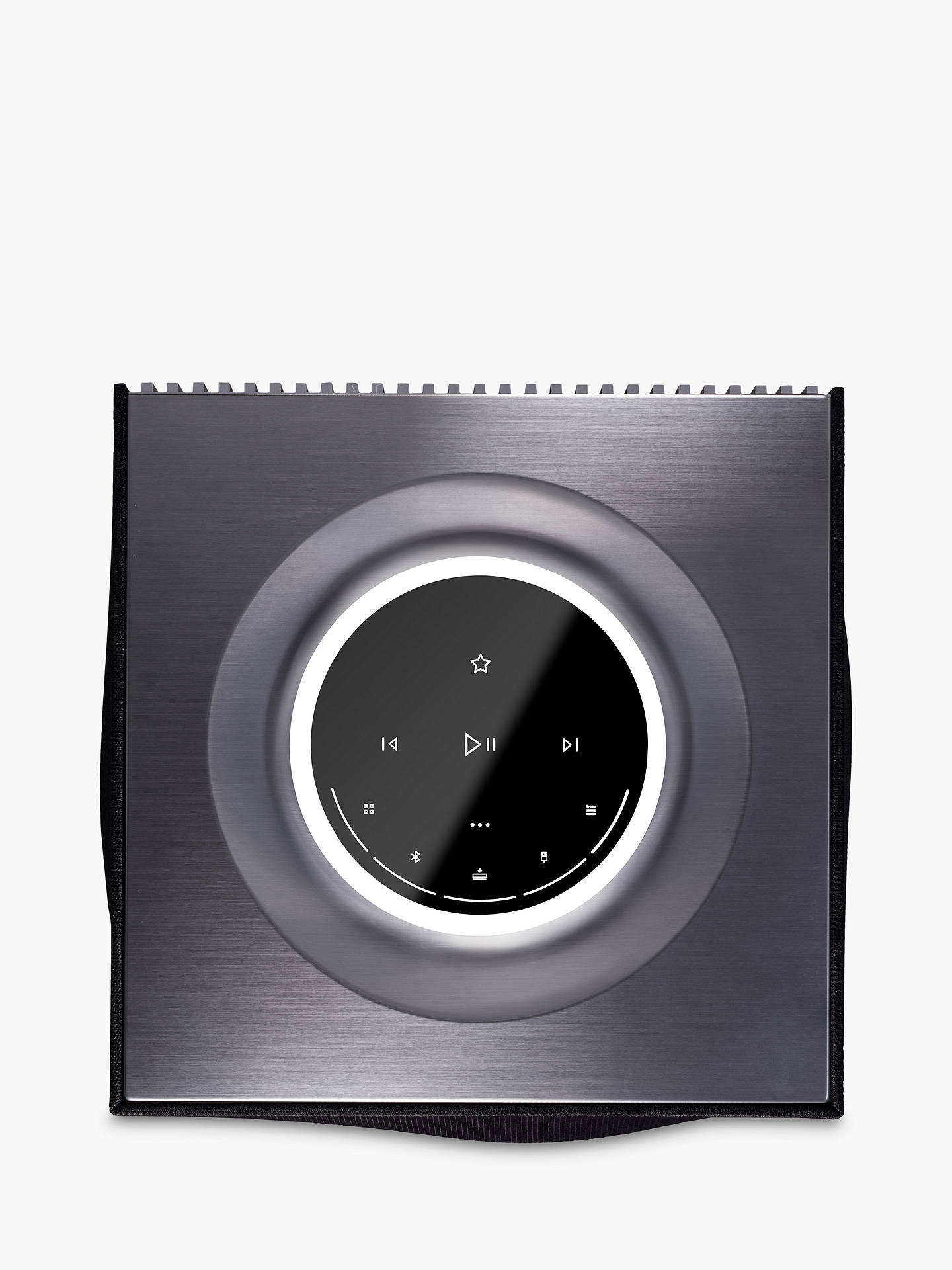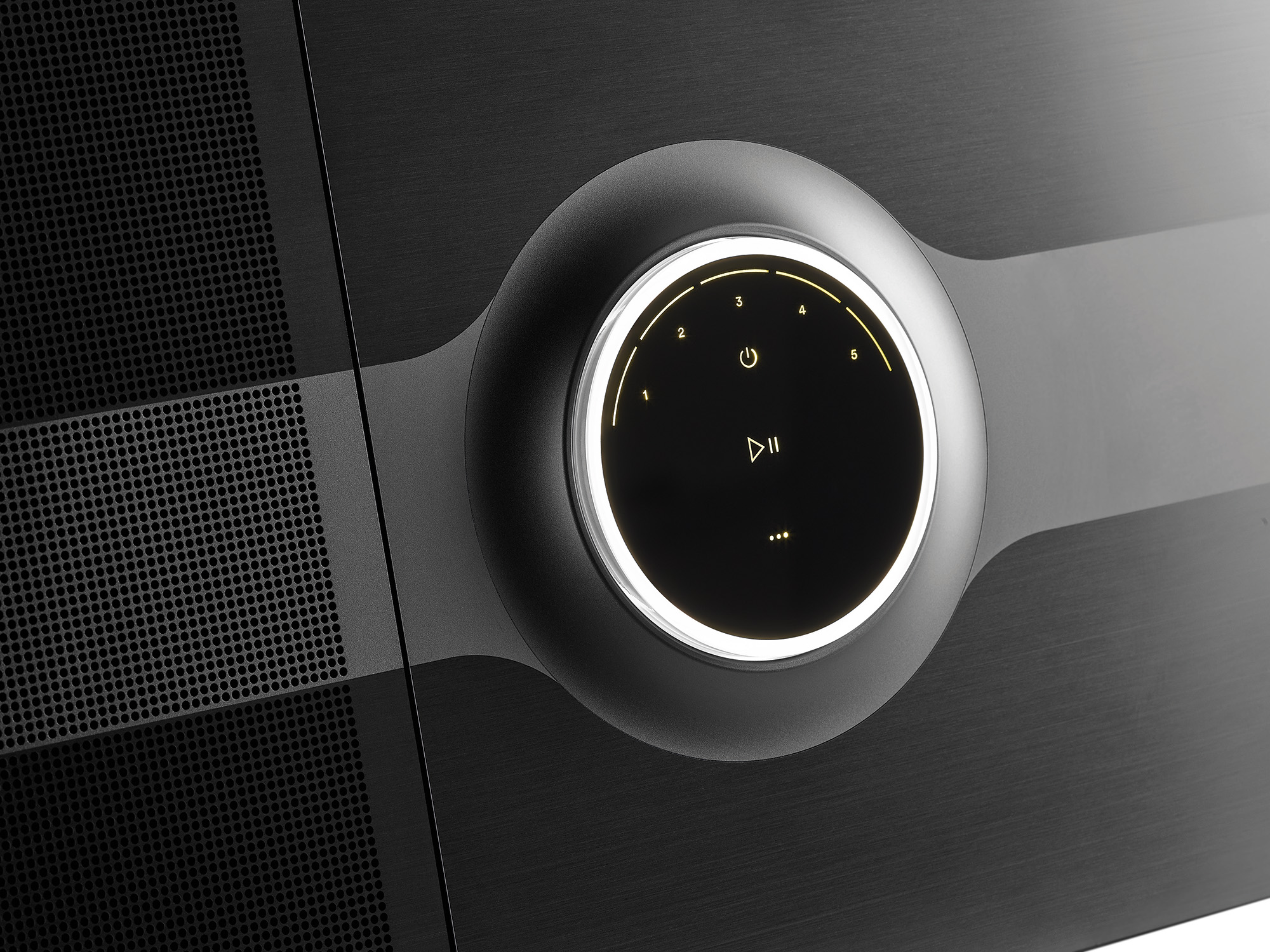 Crafted from matte anodized aluminum, Mu-so Hekla embodies understated luxury in a unified sculptural form. The alternating matte and bead-blasted finish elements recall the high precision of watchmaking, echoing the "watch crown" design code featured on the Diva Utopia exhibit, while the fine perforated radiator grille and signature voluminous dial add a touch of elegance.