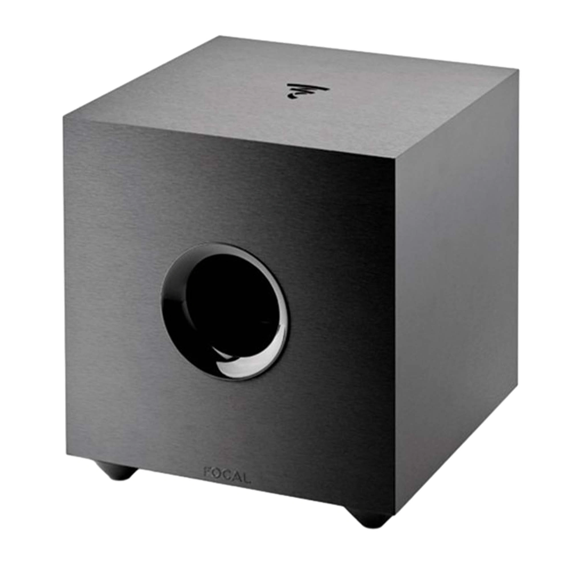 The subwoofer has relatively compact dimensions and unlike plastic glossy enclosures, it is clad in a more traditional laminated MDF with a deliberately sharp and bold texture, stylized to resemble either wood or milled aluminum.