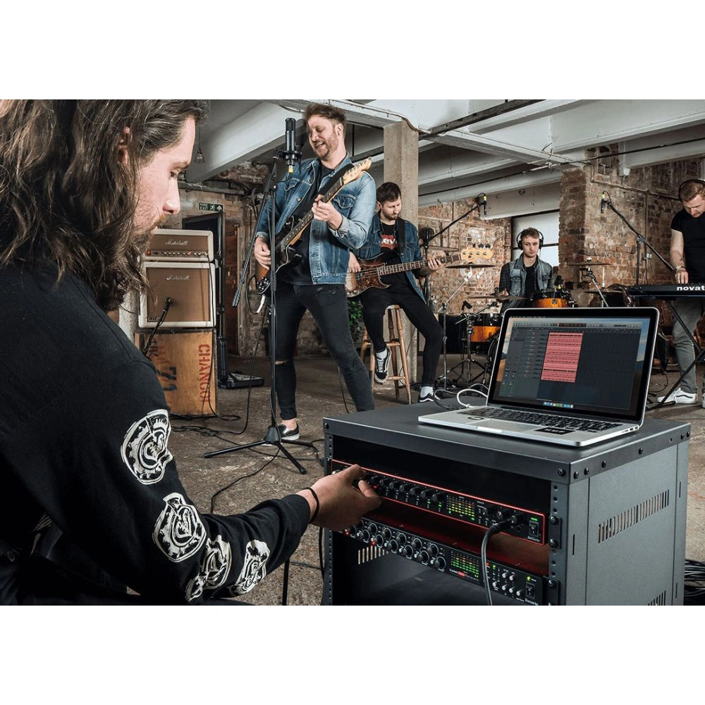 The audio interface comes with an extensive software bundle: Avid Pro Tools First Focusrite Creative Pack, Ableton Live Lite, Softube Time and Tone Bundle, Focusrite Red Plug-in Suite, any instrument from the XLN Audio Addictive Keys pack, as well as a three-month subscription to the Splice service. Additionally, users gain access to the Focusrite Plug-in Collective resource, where they can obtain free versions of new software and discounts. Routing and mixing can be done through the built-in Focusrite Control software, available for Mac, PC, and iOS devices.