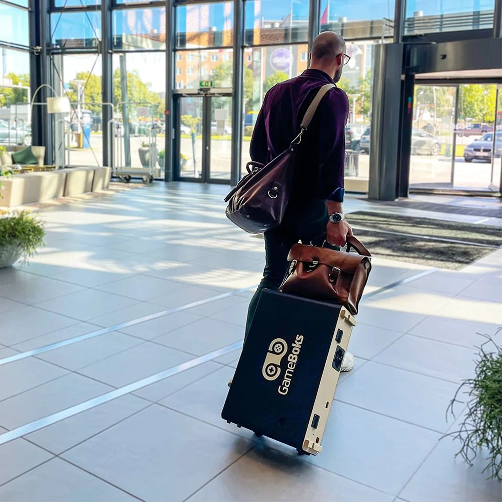 Every GameBoks comes with a attachable trolley which allows you to just stroll with the GameBoks everywhere.