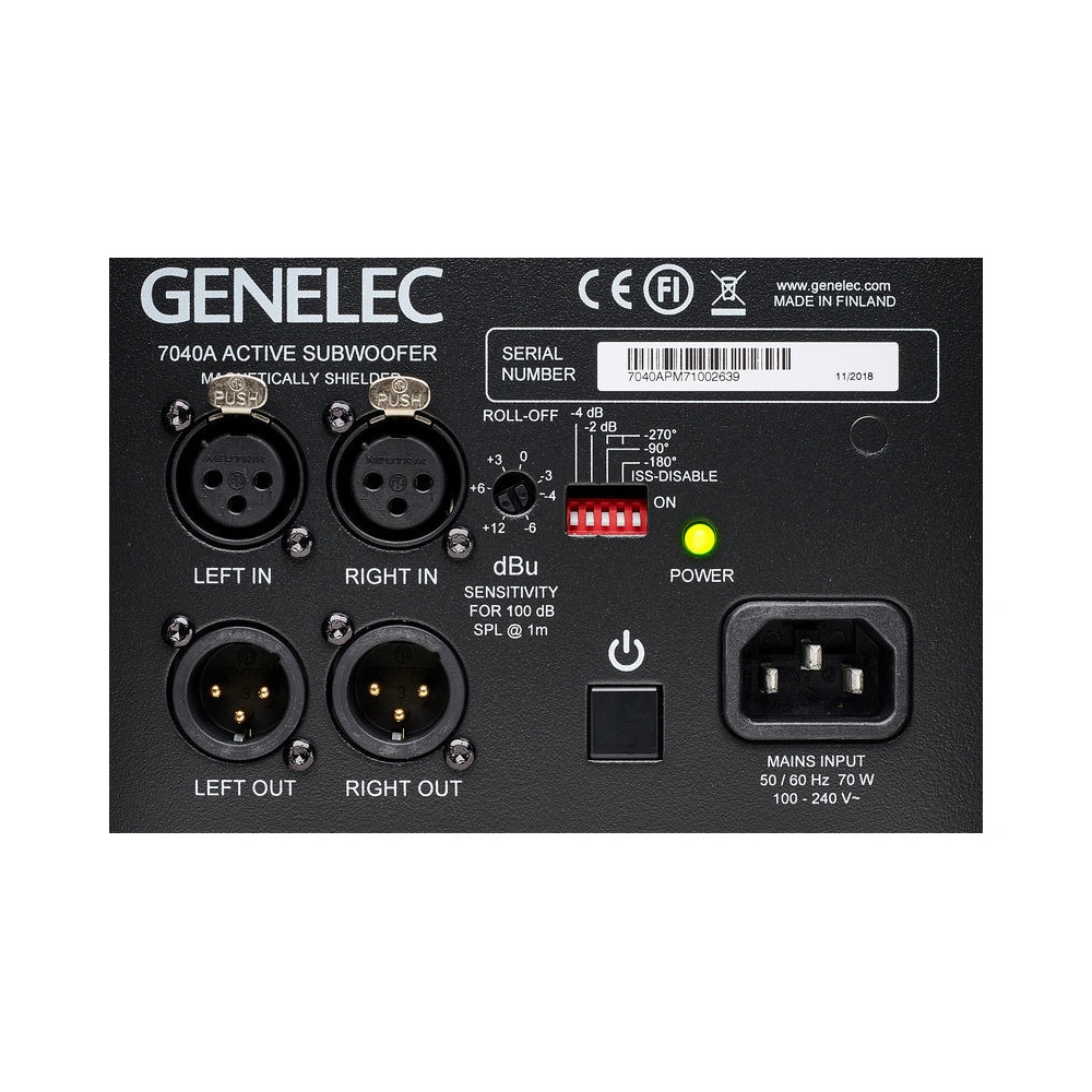The Genelec 7040APM subwoofer features balanced XLR inputs and outputs for two-channel surround sound systems. Special switches allow control over the input filter cutoff slope and absolute phase shift of the signal. Genelec 7040APM is intended for use with Genelec speakers, with which it will be most optimally matched. Since the subwoofer is connected between the surround sound processor and active satellites, it is equipped with the necessary balanced transit outputs. The signal passed through them is unfiltered (full-range), so the corresponding circuitry should be activated in the satellites themselves. This also allows for optimal adjustment of the characteristics of each channel depending on the configuration of the specific system.
