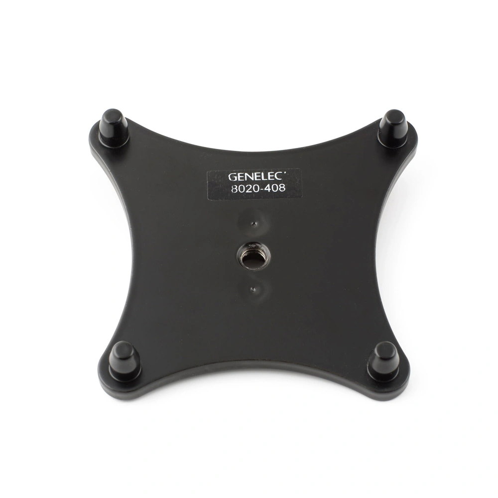 Designed to mount Genelec 8020 monitors on a stand. Intended for use with the included vibration isolation Iso-pod stands. Compatible with stands featuring a 3/8 thread. Can also be mounted on other stands with an adapter.