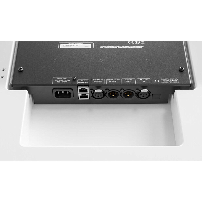 The Genelec W371AP offers three operating modes. One (Complementary) provides a flat and neutral low-frequency response, another (Continued Directivity) utilizes both woofers simultaneously to create consistent directivity aligned with the monitor, and the third (Anti-reflection) minimizes the negative impact of sound reflections from walls, floors, and ceilings. To optimize the signal after selecting the subwoofer's placement, the GLM software's auto-calibration function is used. The subwoofer is equipped with analog inputs and outputs with XLR connectors, AES/EBU inputs and outputs with XLR connectors, and two RJ45 connectors for control.