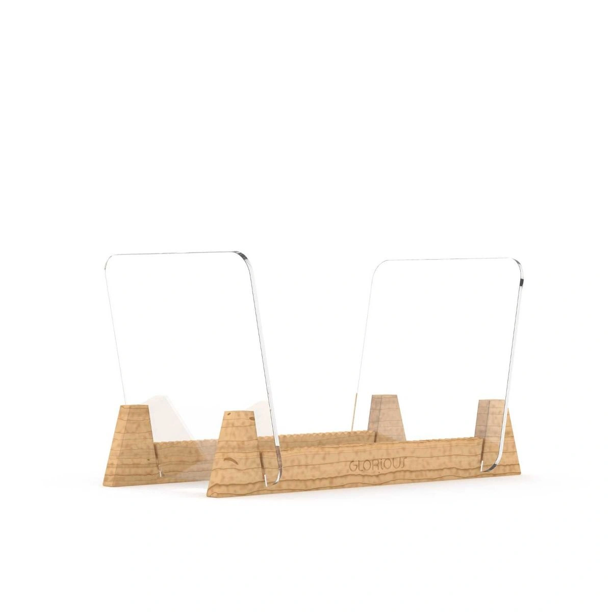 The timeless design captivates with a combination of wood elements and sturdy acrylic glass. The construction of the Record Stand 75 is suitable for all vinyl formats (7’’, 10’’, 12’’) and allows, thanks to the grooved wood, comfortable flipping through the collection without records getting out of place. The useful angle of inclination on both sides keeps records from falling over.