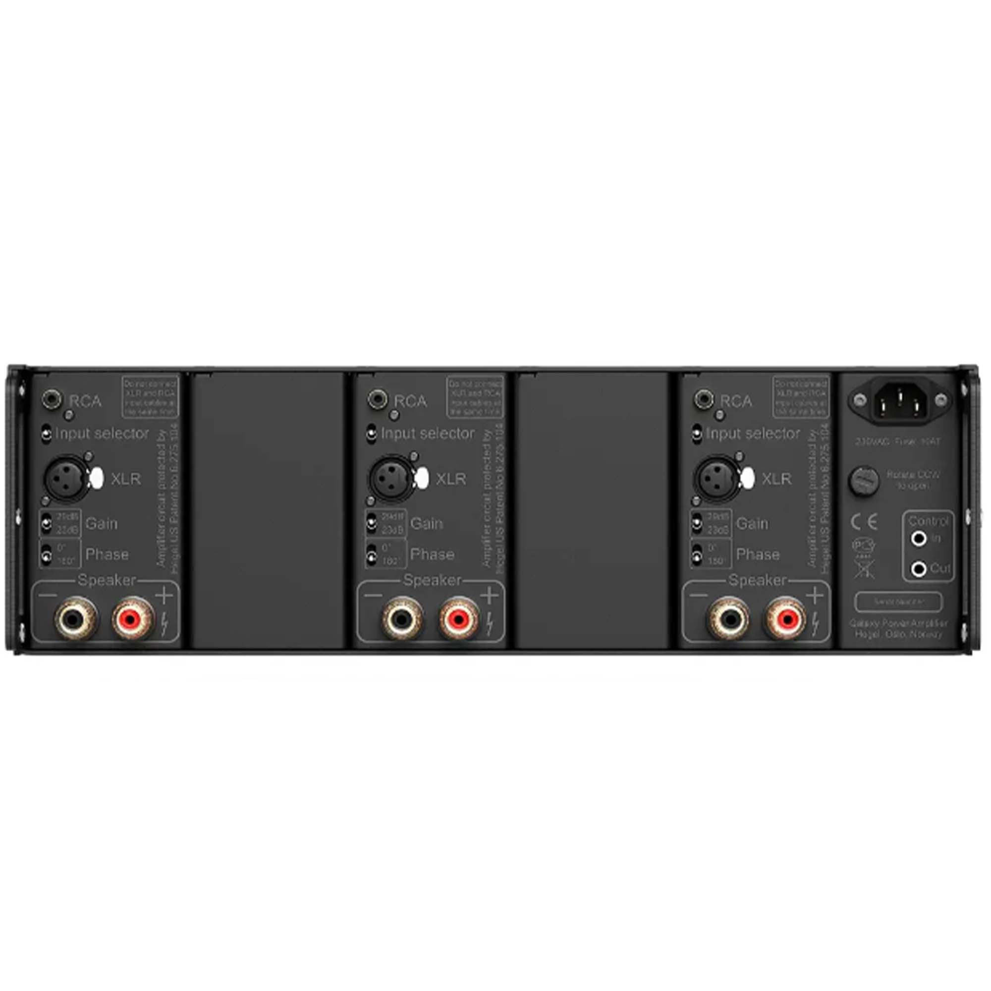 The trigger input and output (allowing chain creation) provide the possibility of placing the amplifier in a separate room without worrying about individual power on/off. The amplifier has a height of 132 mm, and sturdy mounting "ears" are integrated into the body. When installing in a rack, it is recommended to leave space above and below. Additionally, detachable and adjustable "ears" are provided on the rear panel.