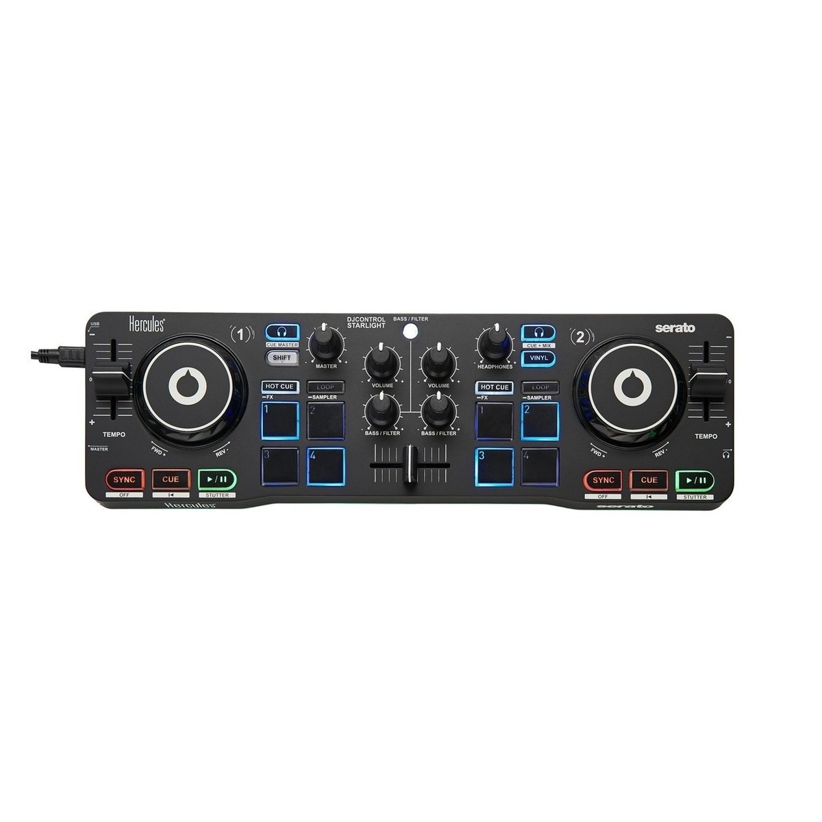 The DJStarter Kit is based on the DJControl Starlight. The Starlight is an ultra-compact DJ controller that gives you everything you need to mix and blend. This portable controller features a built-in USB audio interface and a dedicated headphone output for mixing. It's the perfect starting point for any aspiring DJ.
