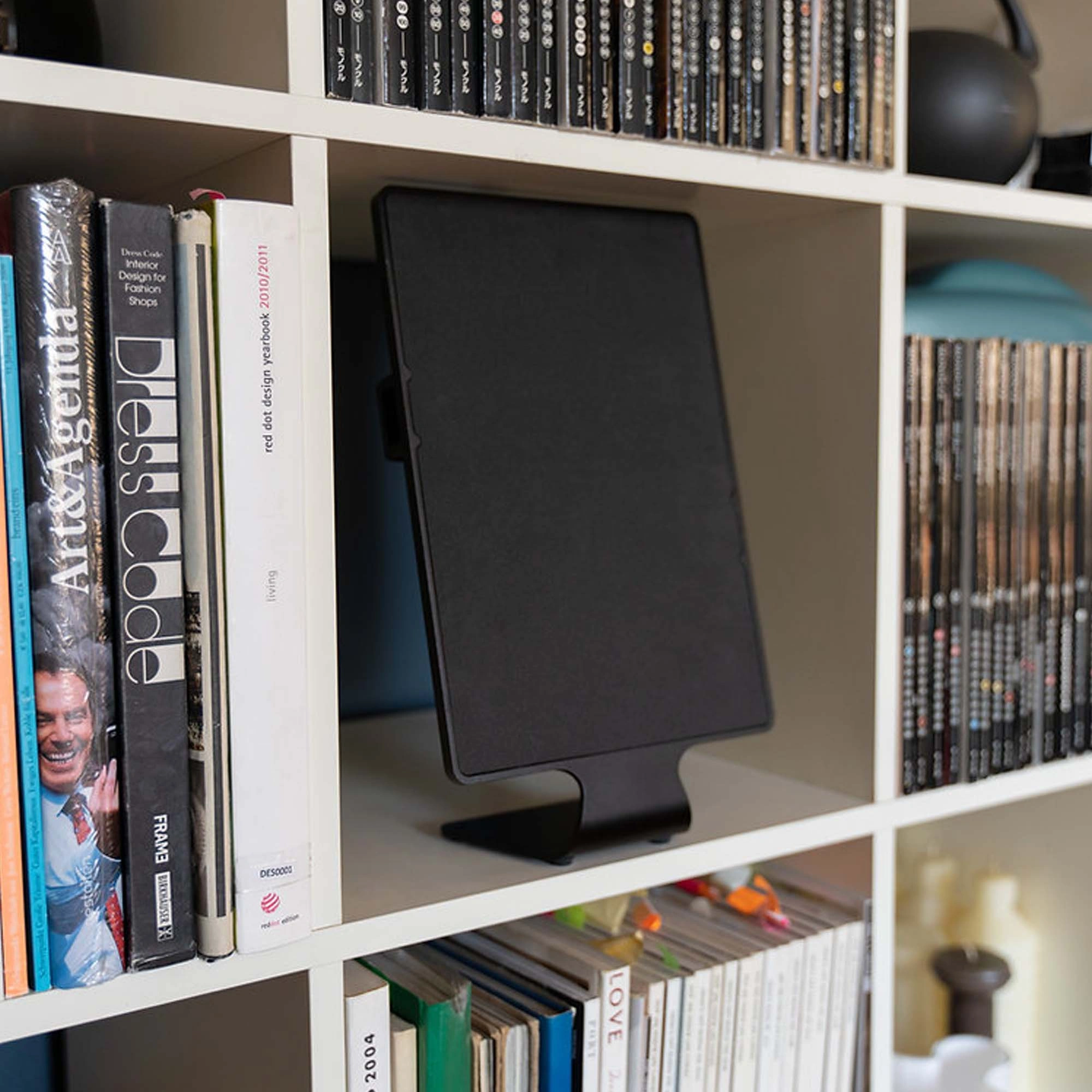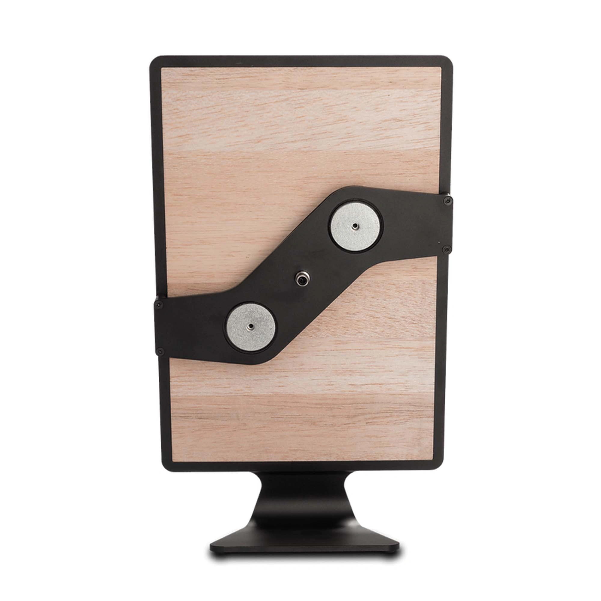 Both speakers benefit from having a Swiss-quality, hand-crafted approach to their production and pride themselves on being manufactured using sustainable materials. The 4mm-sized first layer of the speakers comes from balsa wood harvested from reforested plantations that generates micro-vibrations for optimal sound and is covered by an engineered, second layer of 4mm thin, acoustic foam. The 8mm thin frames of the speakers double as a tabletop or bookshelf stand that is created from machined, hard-coat anodized, recycled aluminum.