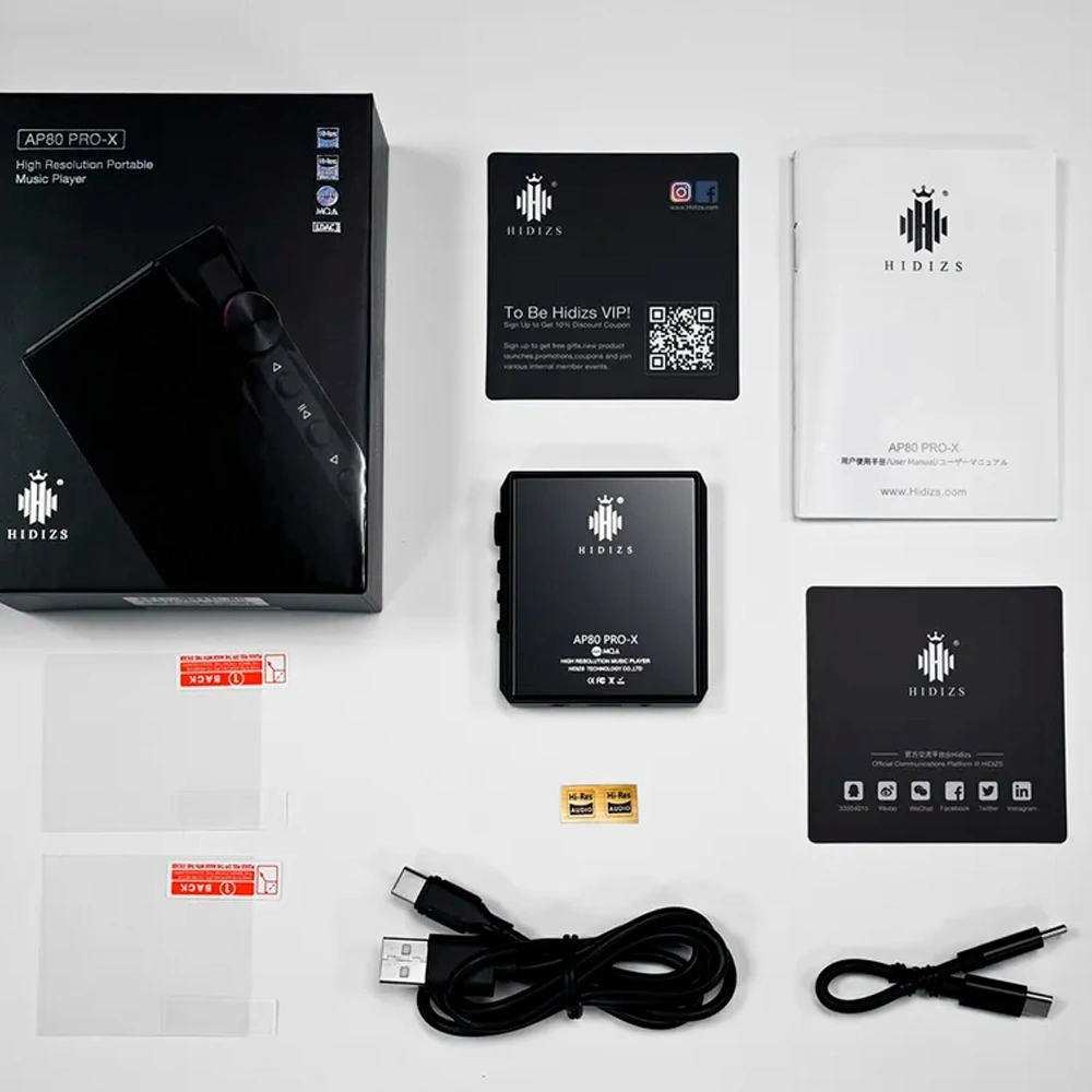 The Hidizs AP80 PRO-X is a compact and powerful digital music player that is distinguished by its sleek design and high-quality components. Behind its 2.45-inch touch-sensitive IPS screen, you will find two ESS ES9219C digital-to-analog converters, a powerful FPGA chip, a Bluetooth chip, and a large battery. The AP80 PRO-X is not only efficient but also versatile when it comes to sound reproduction.