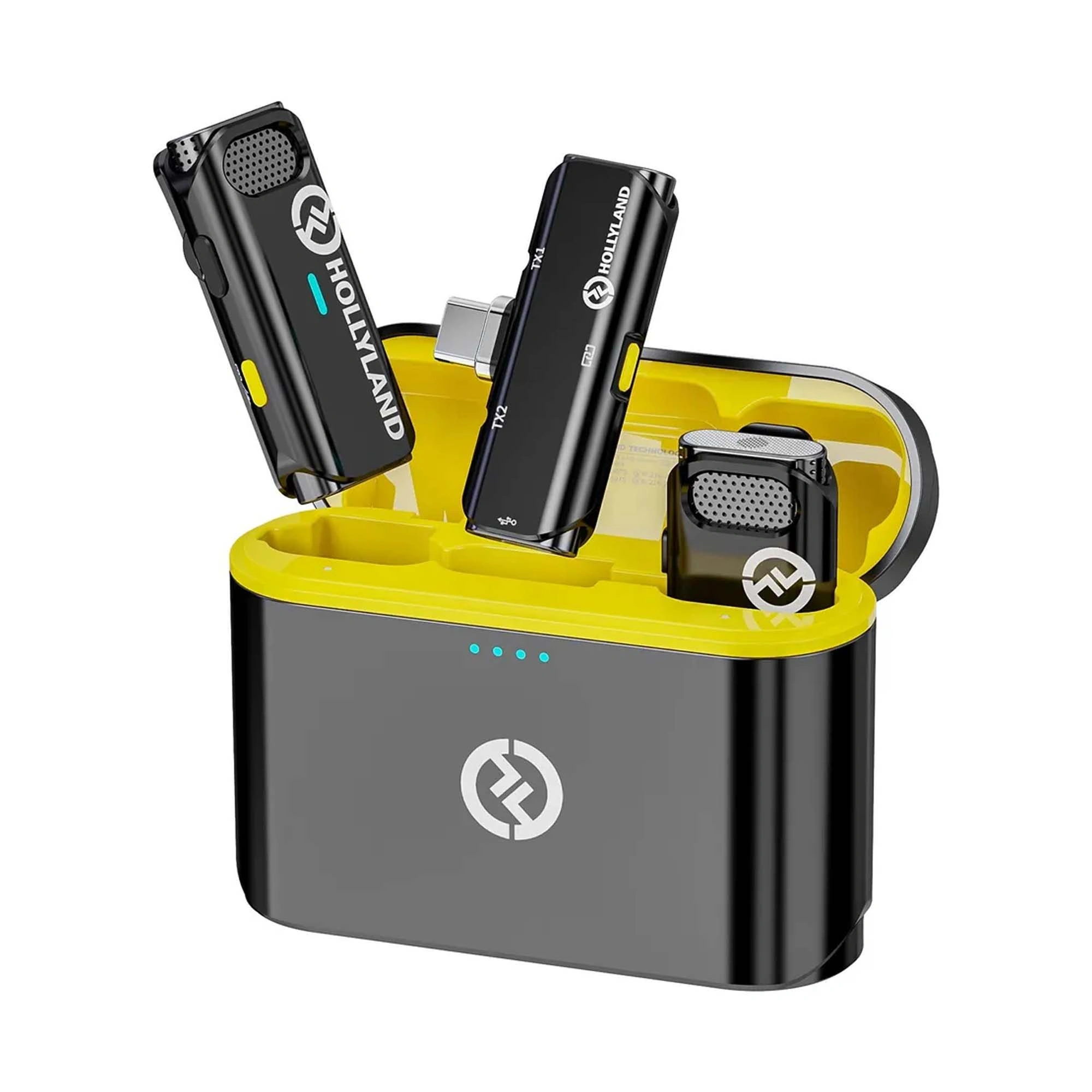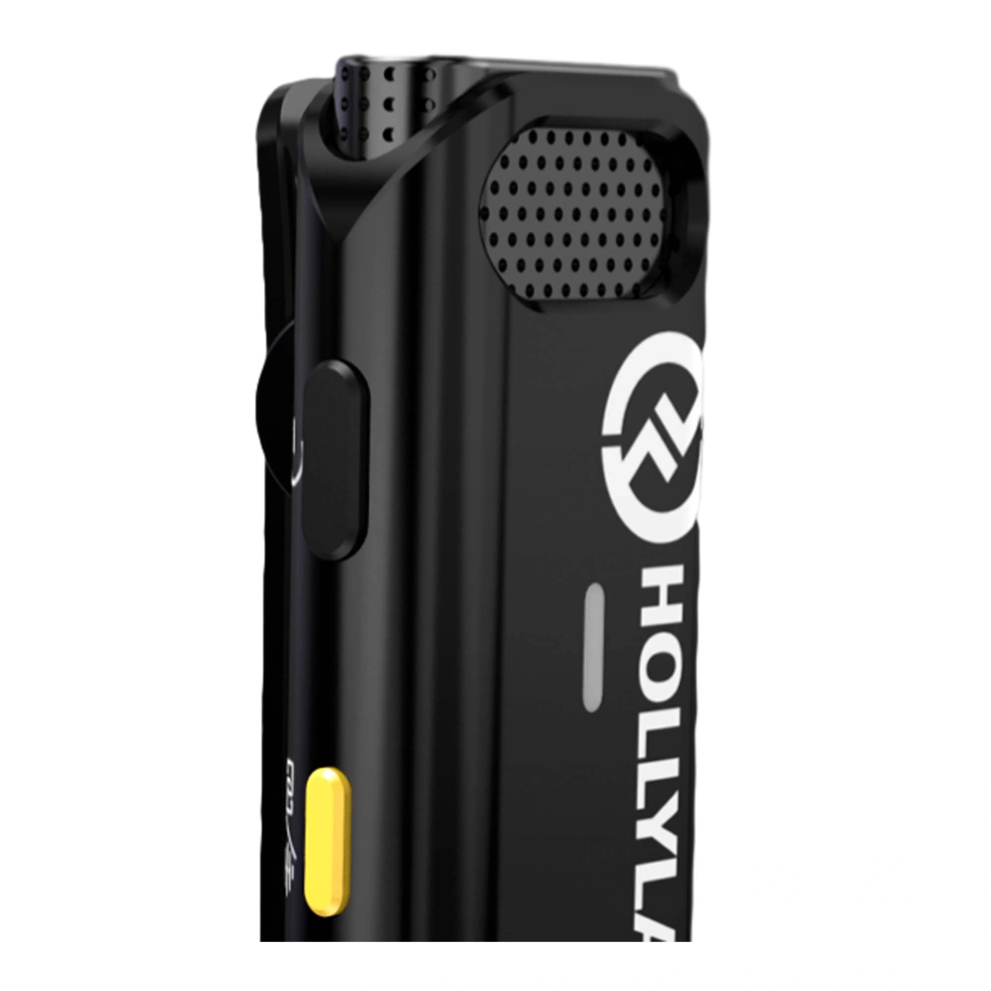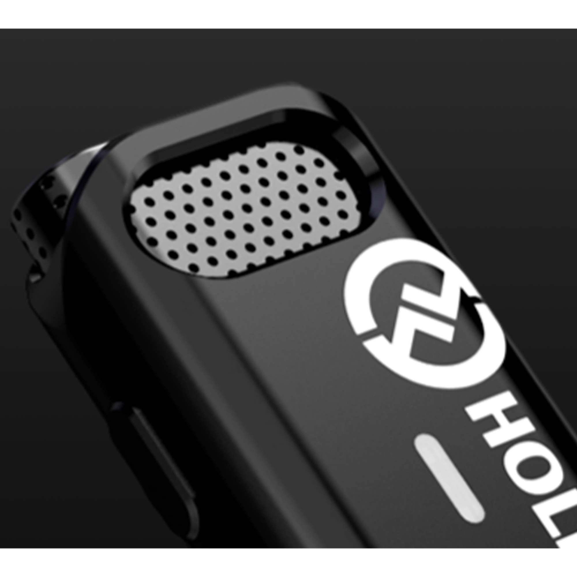 The Hollyland Lark C1 DUO Android transmitter can be attached to clothing like a regular lapel microphone for voice recording. Sound is recorded in 48kHz/16-bit format, ensuring wide detail in a frequency range from 20Hz to 20kHz.
