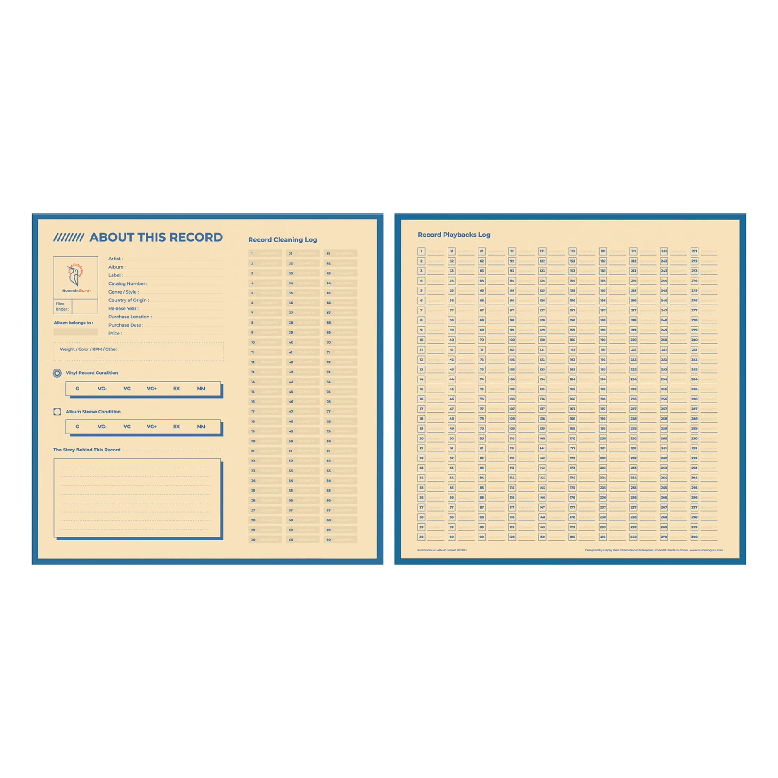 Document your personal stories and memories associated with your cherished records, track playback dates, maintain cleaning records, and keep essential album information all in ONE PLACE. You can make notes of each record playback up to 300 times to help you remember how often the album has been played back. In addition, you can record the date of each record cleaning up to 90 times to track the level of care given to your records.