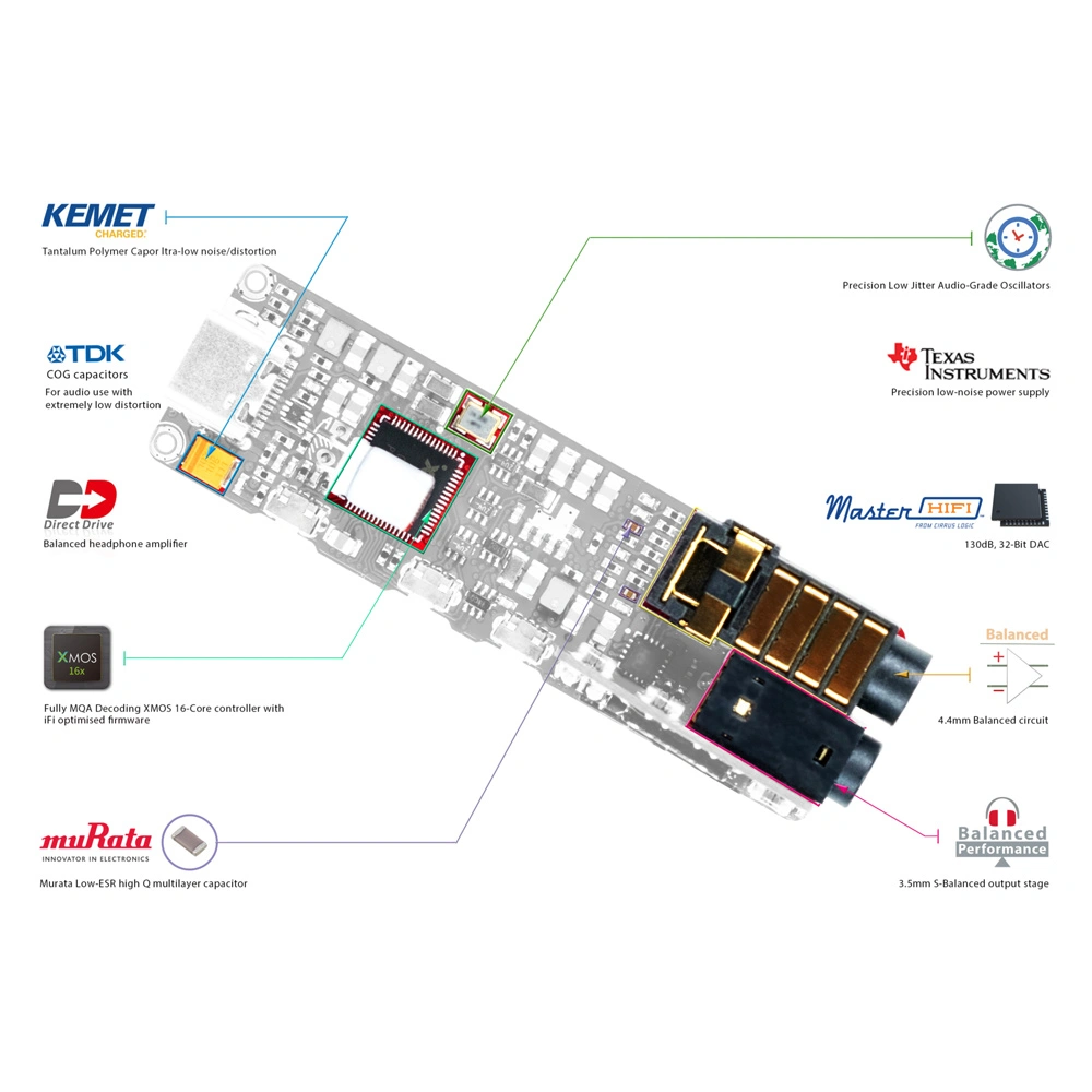 Despite its small size, the GO bar analog circuitry has a balanced design with a symmetrical dual-channel output stage. This reduces noise and crosstalk in the signal path by completely separating the left and right channels. High-quality discrete components are used in the circuit, and special attention has been paid to power source filtering, significantly reducing signal noise introduced through the USB input.