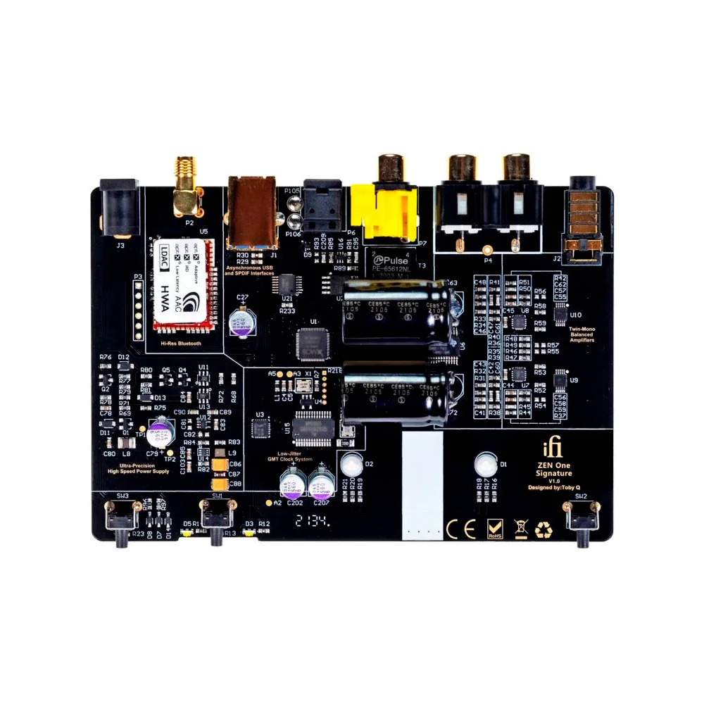 The Signature series of ZEN One includes special enhancements such as a low jitter quartz crystal for precise timing, a powerful 16-core XMOS microcontroller with low latency, C0G capacitors for superior linearity, MELF resistors ensuring high precision and low noise, and top-notch Taiyo Yuden and Murata inductors.