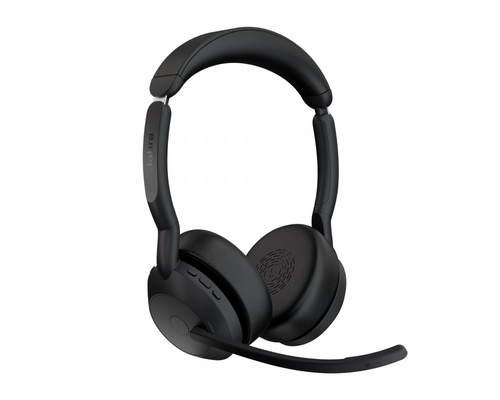 The Jabra Evolve2 55 headphones are specially designed to meet your needs. They are ready for work no matter what you're doing, providing professional sound for your calls and music thanks to powerful Active Noise Cancellation (ANC), noise-canceling microphones, and 28mm speakers.