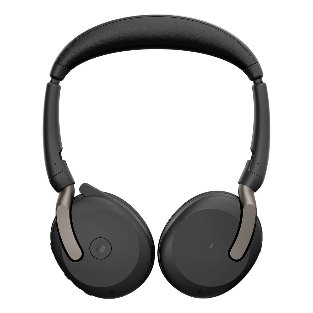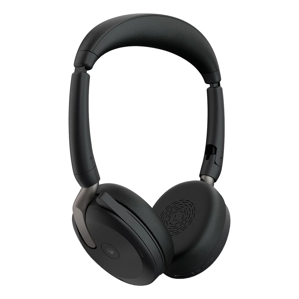 Jabra engineers wanted to help you adapt wherever your hybrid day takes you. So they made sure Evolve 2 65 Flex stands out for all the right reasons. Its new streamlined silhouette not only looks elegant, but it gives you a serious look with the innovative folding headband that folds flat, making it easy to take with you wherever you go. And since the stem of the headband is shorter and flips up to hide away, you can sound ultra-professional in the office while still being able to listen to music during downtime - without looking like you're about to give a presentation.