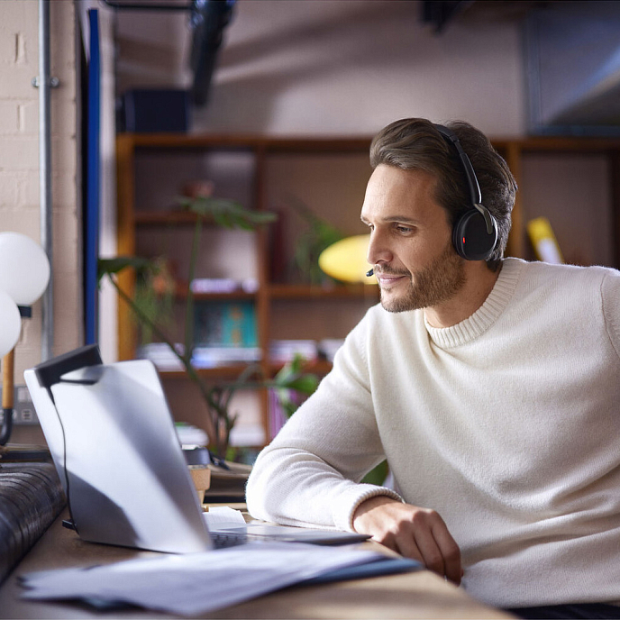 That important work call you've been waiting for has finally come through. But you're stuck in an unprofessional environment? Don't worry about it. Evolve 2 65 Flex adjusts background sounds flexibly so your calls and virtual meetings sound clear wherever you are.