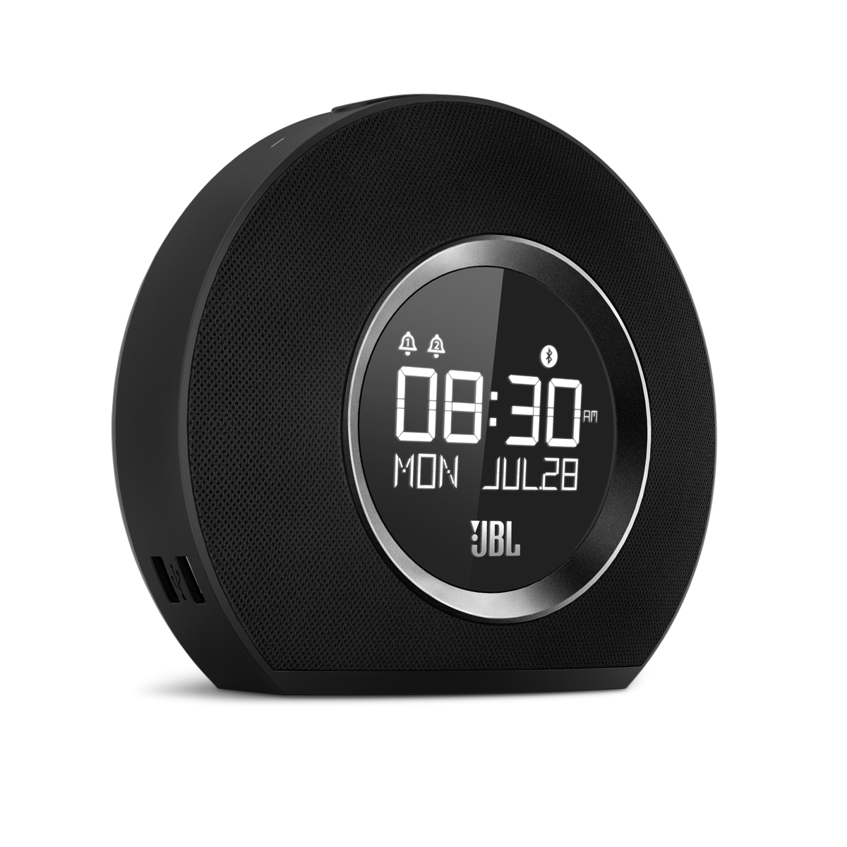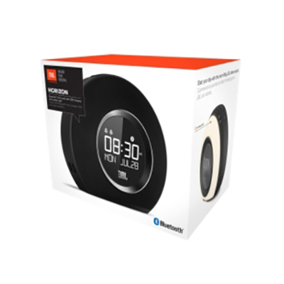 The JBL Horizon offers five programmable FM radio presets and can wirelessly stream music from any phone or tablet with Bluetooth support. Its compact design allows you to place the device in any room, fitting seamlessly into any interior. Two USB ports provide fast charging for any connected devices. The large Snooze/Light button, combined with a clear LCD display, makes using the JBL Horizon very simple and intuitive, and the built-in backup power system ensures you will always wake up, even during power outages.
