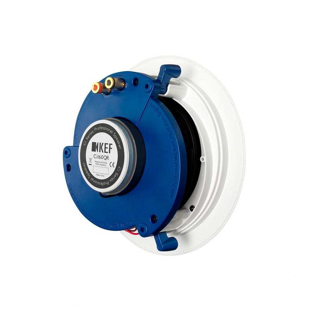 The KEF Ci160QR includes gold-plated spring-loaded terminal blocks and a new computer-optimized decorative ring, which provides stunning clarity of midrange sound and a more open and natural sound in the wide listening area. It also features powder-coated decorative grilles and KEF's signature plastisol coating, which provides corrosion resistance and is perfect for use in high-humidity conditions.