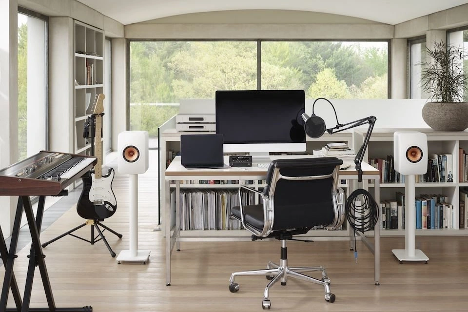The construction of the KEF LS50 Meta cabinet is identical to the original LS50 speakers, with some modifications to the rear panel for improved performance and aesthetics. The speakers can be placed on any flat surface or on the matching KEF S2 stands, designed to complement the speakers in size and color.