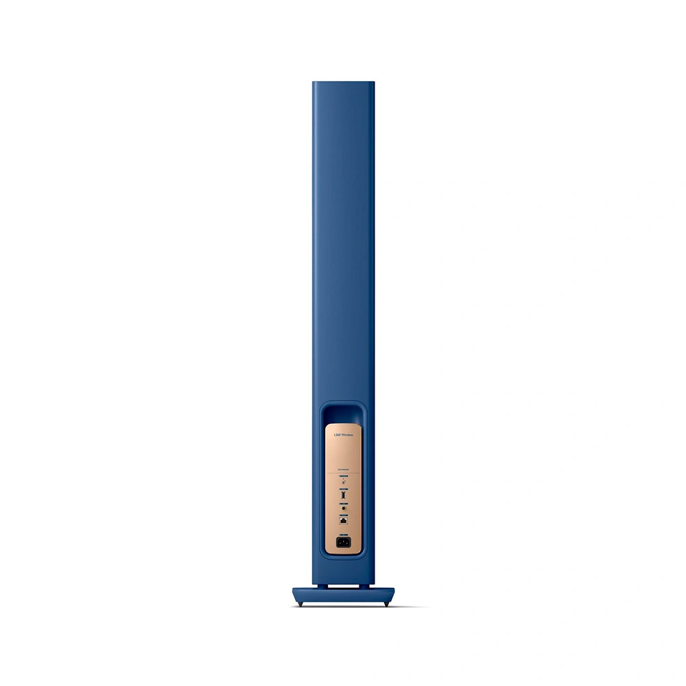 The total output power of the KEF LS60 Wireless speaker system is an impressive 1400W. In a pair of LS60 Wireless speakers, one is the master speaker (with all the connection components) and the other is the slave speaker. Both speakers are active, with DSP and three amplifiers: class D for low and mid frequencies, and class AB for the tweeter.