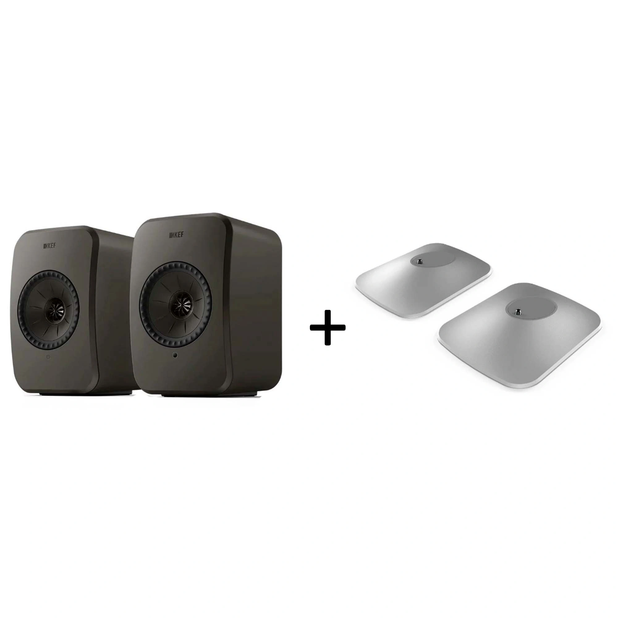 The LSX II LT audio system offers versatile placement options. You can place the speakers on a bookshelf or desk with the help of special accessories - the speakers are compatible with the KEF P1 desktop stands (sold separately). LSX II LT can also be placed on KEF S1 floor stands (sold separately).