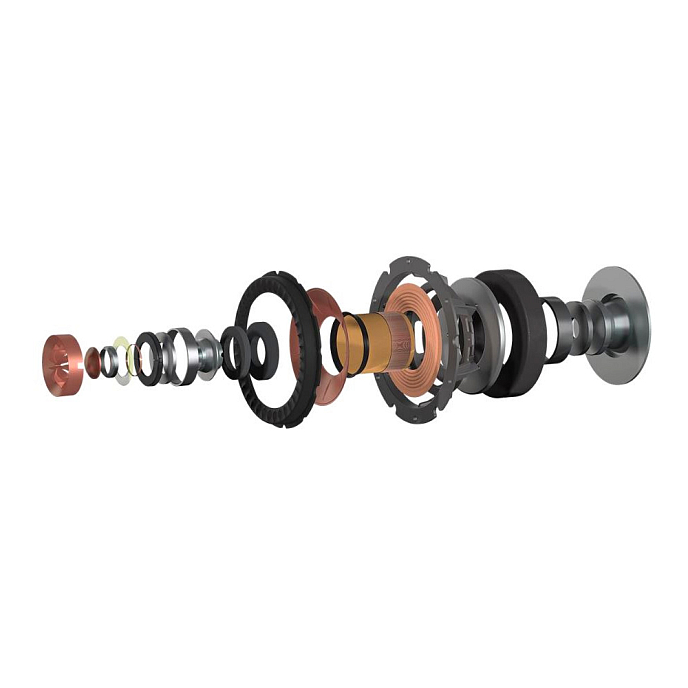 The 10cm diaphragm of the mid-range driver in the Uni-Q system features longitudinal stiffening ribs to eliminate resonances. The driver's surround is angled for uniform propagation of sound waves without distortions that may arise from reflections off the front panel. The low-frequency driver in the KEF Q11 Meta is equipped with an aluminum diaphragm with special ribs for increased stiffness. The tweeter also has an aluminum diaphragm with petal-shaped acoustic cutouts. Both drivers are mounted on a common chassis, and their magnetic systems are precisely matched.
