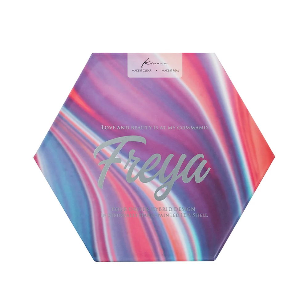 After extensive research and experimentation, Kinera's chief designer has discovered the perfect colors and materials to showcase the beauty of the goddess Freya. Each pair of earphones is meticulously handcrafted and hand-painted. The external design is sketched and then painted by an experienced designer.