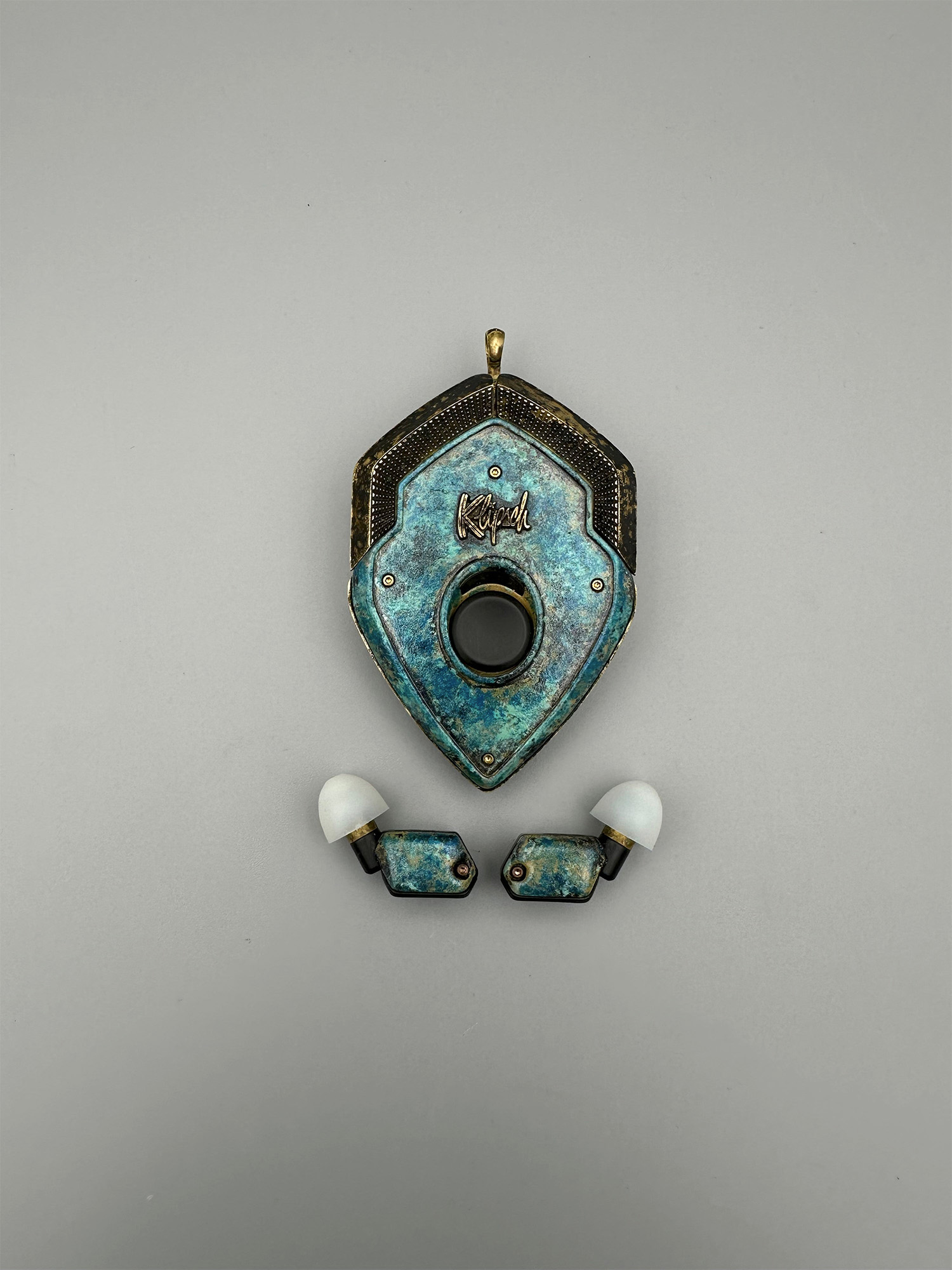 If science fiction explorer Professor Pierre's infamous 20,000 Leagues Under the Sea been had written 150 years later, we believe the T10 Bespoke would have been the perfect complement to their odyssey. In any event, we know this special edition unit will capture your own spirit of adventure as it looks like it was plucked straight from the abyss of the ocean floor after decades in undisturbed solitude. Intricate detailing on the solid bronze metal is transformed by a deep patina much like the minerals harvested from the sea itself. Artfully hand patina'd Cerakote over ceramic Zirconia for the charger covers and ear-computer top/bottom covers capture the spectrum of color offered by the movement of the ocean. Matte-black bead-blasted ceramic zirconium used to accent the charger button and also the ear-computer frames harken the darkness of the sea at full depth; and compliment an overall aesthetic of low-key confidence and sophistication becoming of a true deep sea explorer.