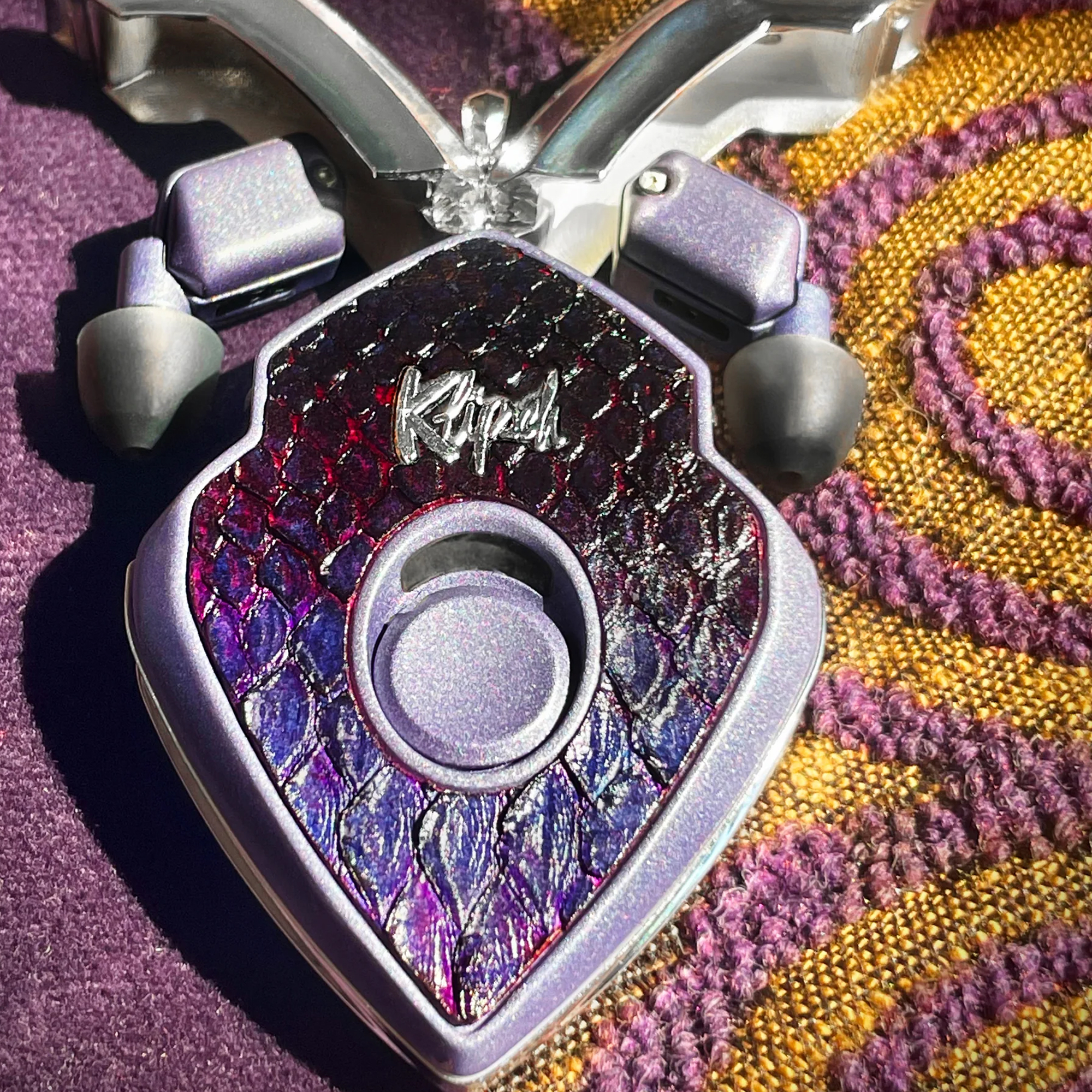 This T10 Bespoke features python charger covers with brilliant tones of indigo, iris, and wine contrast against an incredible 925 solid-sterling-silver frame, doors, and audio tubes to yield a truly radiant luxury hi-fi listening instrument.
