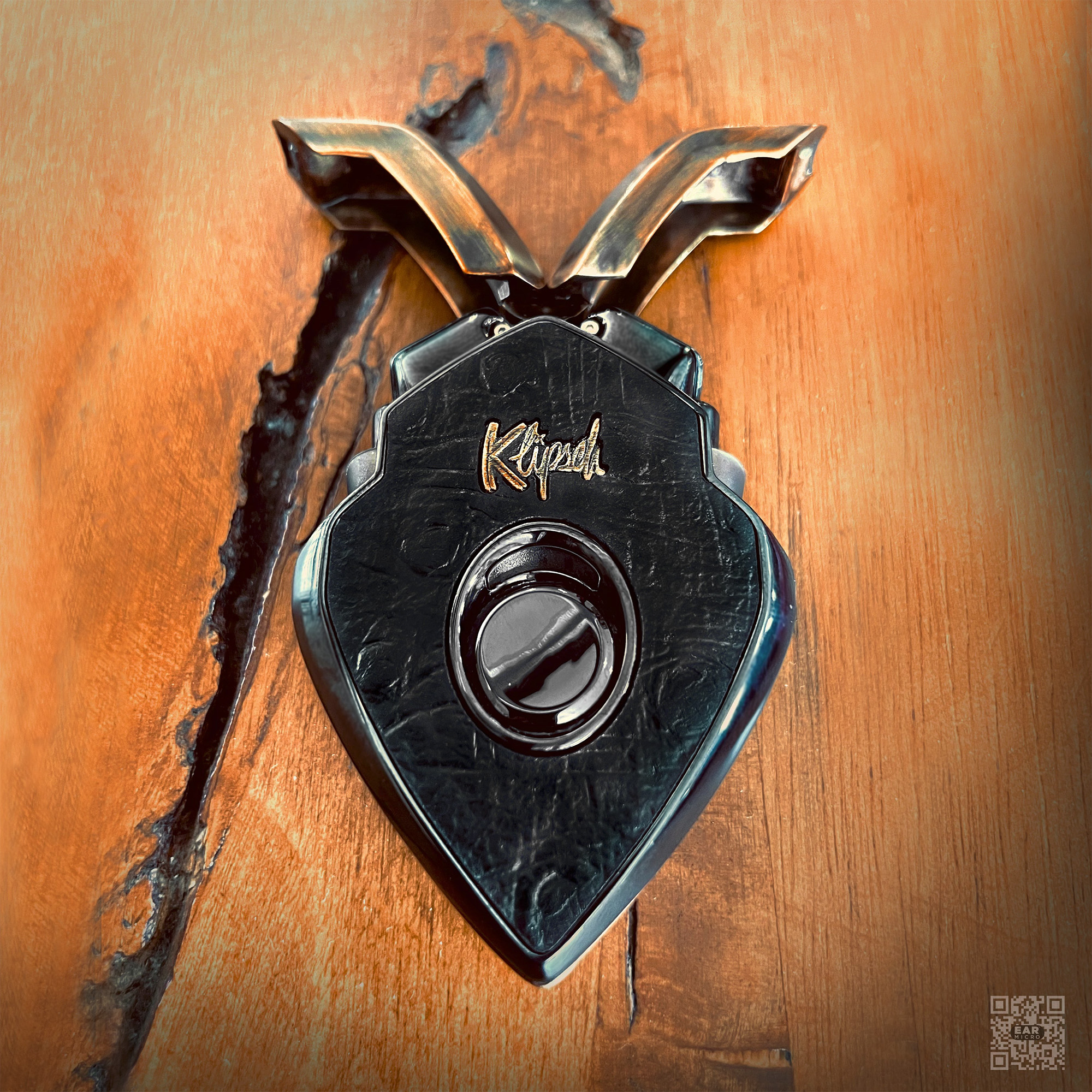 The Midnight Oil features genuine ostrich leather on the front and back charger covers accompanied by gull-winged doors and frame in a hand-patina aged-copper finish over solid bronze sealed with a clear Cerakote for longevity.