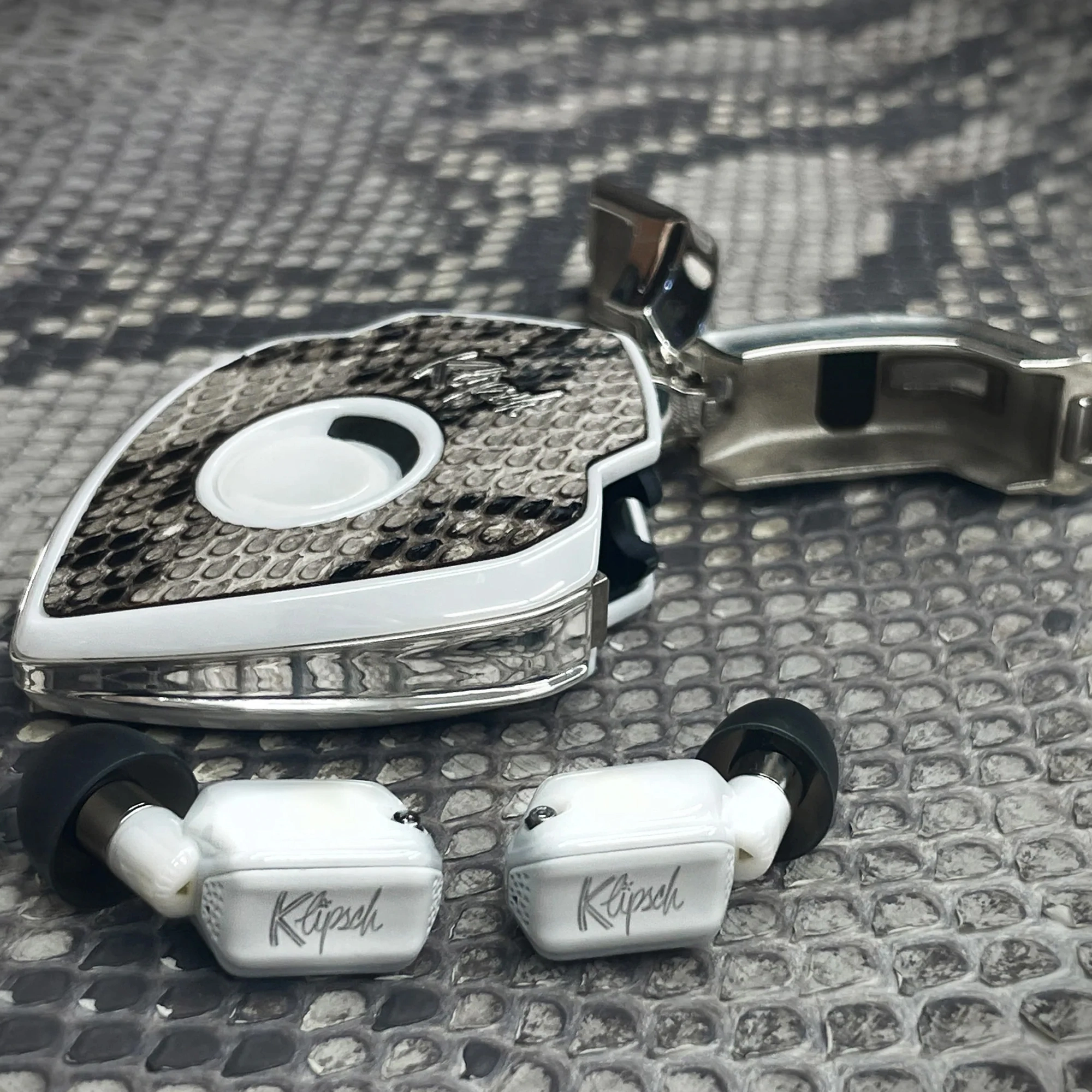 The Pitone d'Argento T10 Bespoke is resilient and adaptable as its namesake. Featuring solid mirror-polished 925 sterling silver and natural python cover inserts, this white and silver beast of portable audio will never go out of style; and thanks to our patent-pending chassis architecture, the technology packed inside can always be renewed, repaired, and upgraded so you'll truly enjoy it for life.