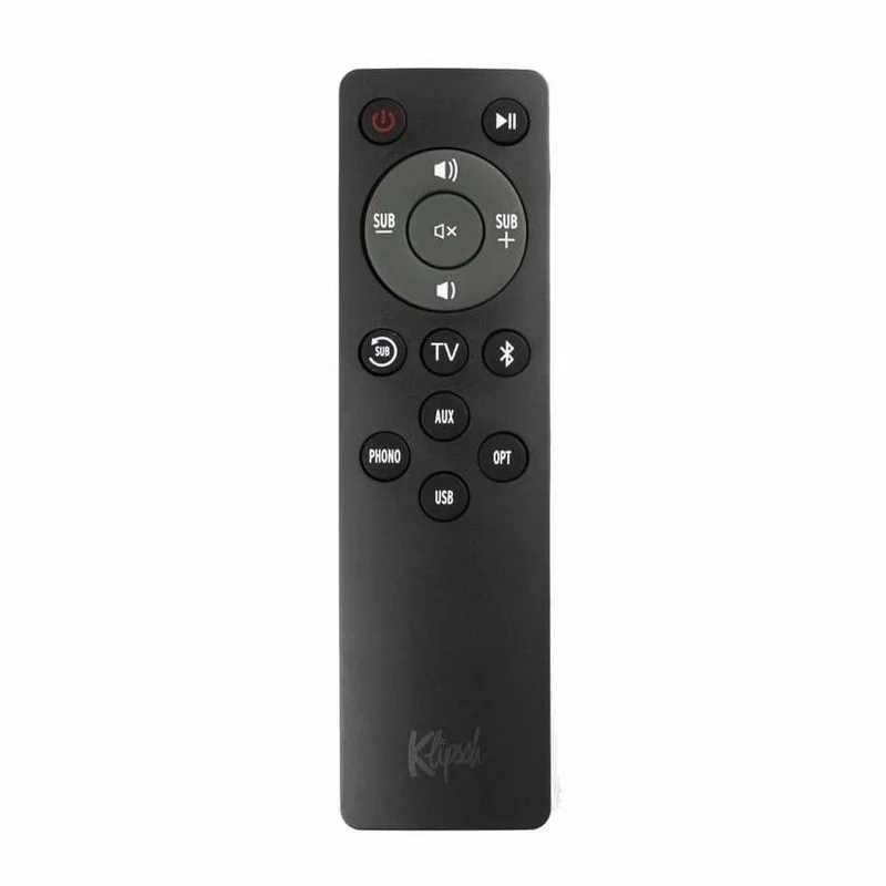 For connecting portable sources, there is a 3.5mm Aux jack. An optical input and USB port are available for connecting to a computer. An active subwoofer can be connected to Klipsch via the Sub Out output, and a small standard remote control is included for remote management of the speakers.