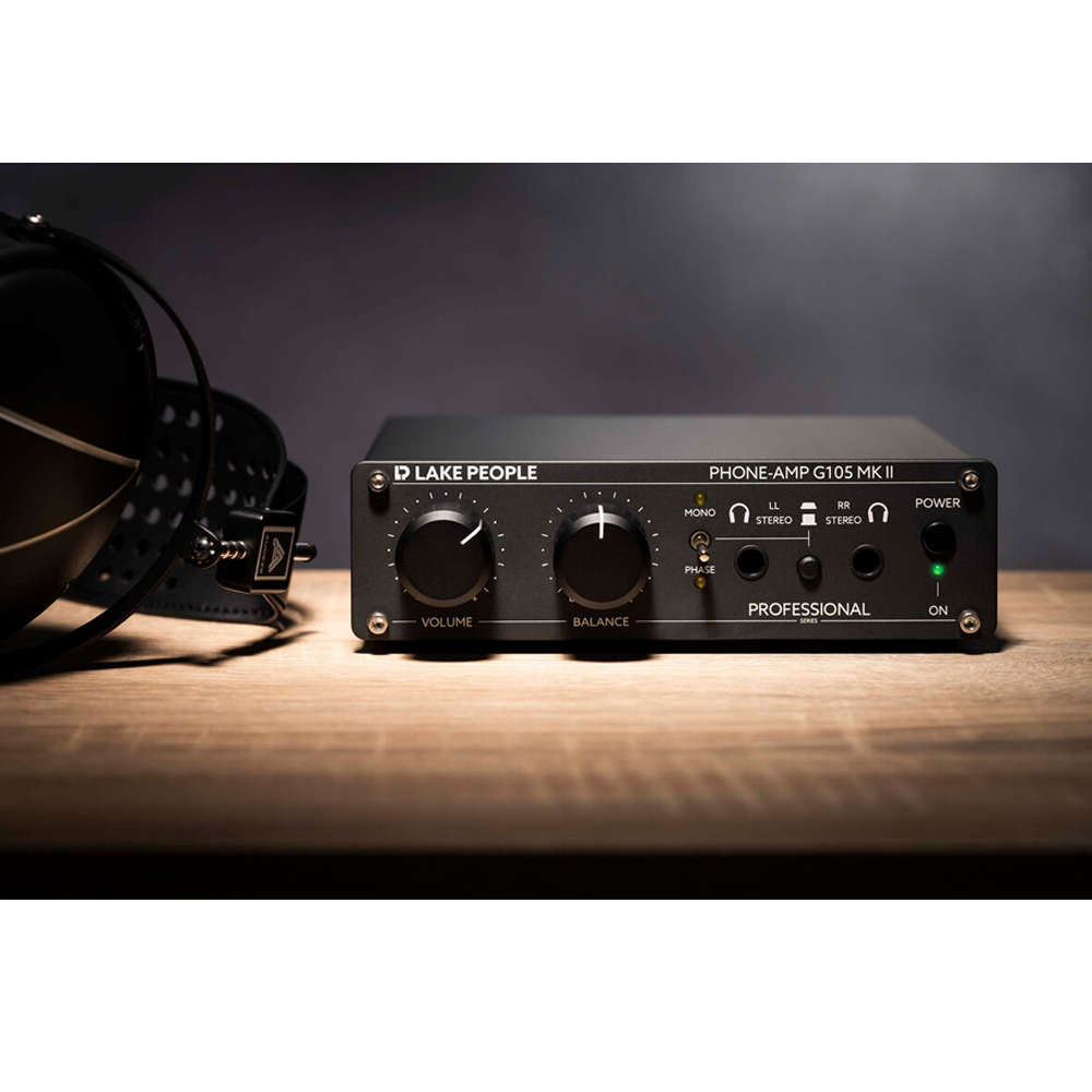 The Lake People G105 MKII is a compact studio headphone amplifier that delivers exceptional sound quality. It is designed to have minimal noise and distortion levels, and it can support dual headphone outputs at the same time.