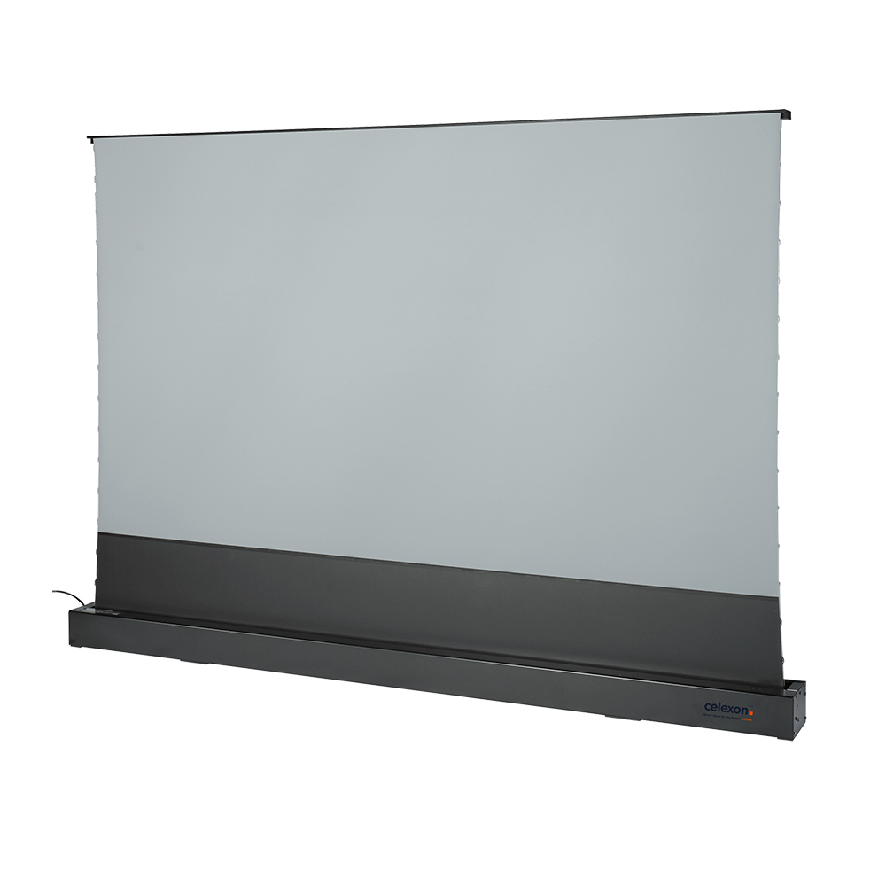 The celexon CLR HomeCinema UST electric floor-mounted screen in combination with a modern ultra-short distance projector is a true large-screen TV replacement. Thanks to celexon’s innovative 8K contrast projection screen fabric (known from the celexon CLR HomeCinema UST Frame Screen) and the clever, electrically operated scissors-joint construction, a large picture is easily possible in almost any room.