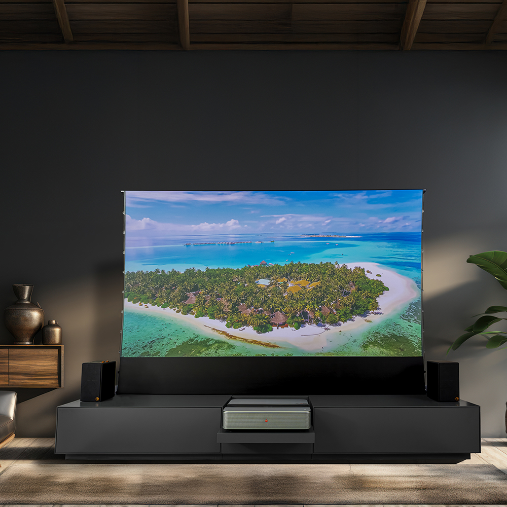 An exclusive offering available solely in the Middle East, this fully integrated motorized system comprises the Cine, a mortised ALR screen and a motorized and customized cabinet. It provides a seamless and inspiring experience tailored to complement the surrounding environment, all effortlessly activated with the touch of a single button. The cabinet color/finishing can be customized as per your interests, which makes it highly adaptive to the design requirements of your apartment/ villa. This integrated unit is available in two different sizes; 100 inch and 120 inch. The prestige bundle unfolds a world of sheer cinematic involvement.